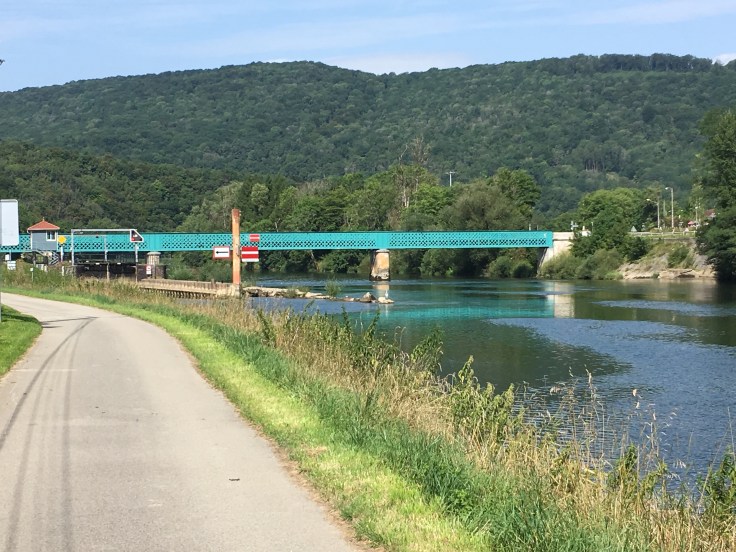Regardez là, nous quittons Le canal du Rhin au Rhône pour arriver sur la Saône que nous allons suivre pendant toute la journée.