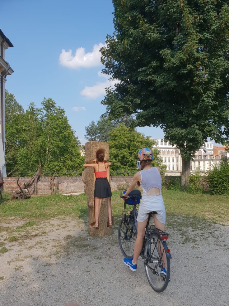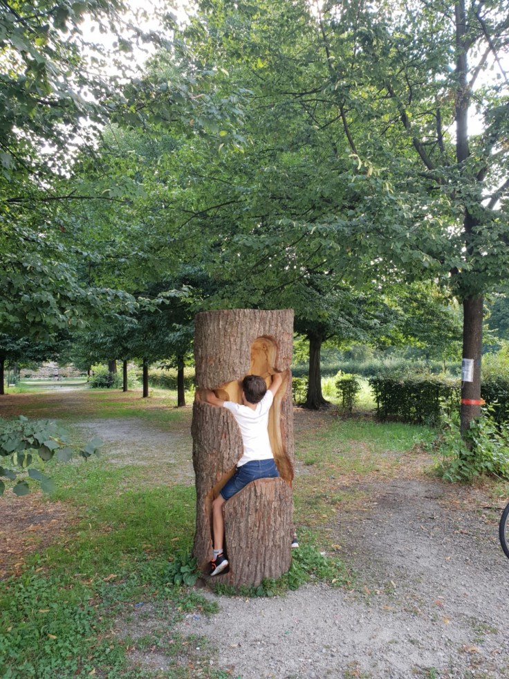 En chemin nous tombons sur un parc insolite, sans doute un espace utilisé par des étudiants en Beaux-Arts dont l’université est juste à côté. Les enfants y trouvent de drôle de sculptures.