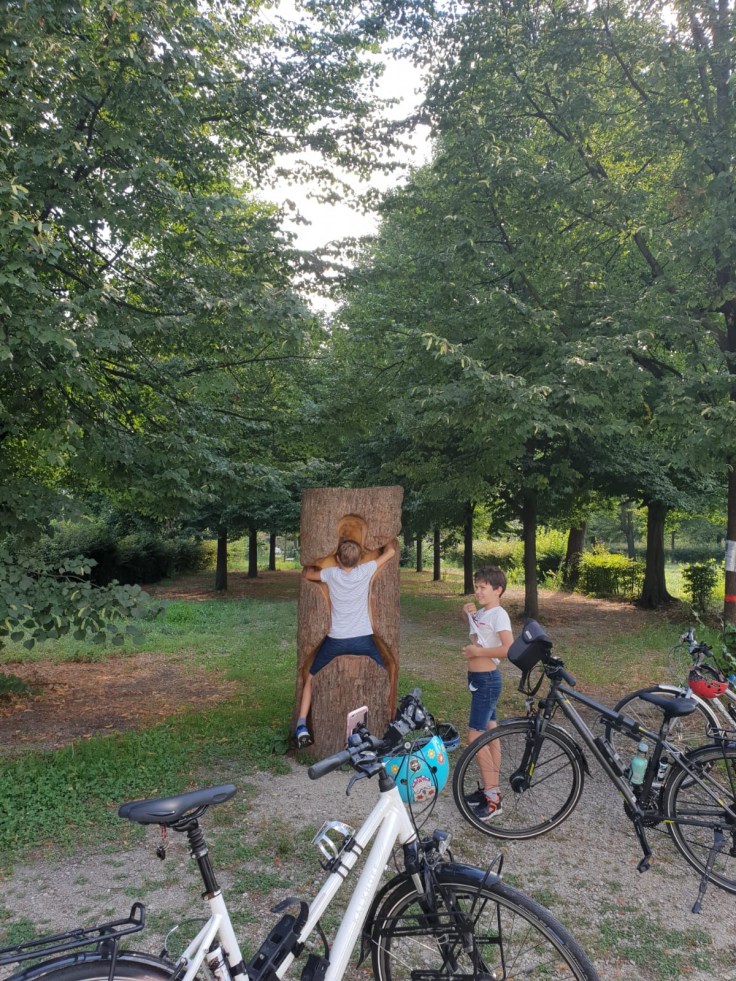 Pascal est parti avec Pierre-Louis en avance pour faire réparer son vélo. C’est l’occasion de faire des photos du fleuve que nous allons suivre pendant presque 700km. Le Pô