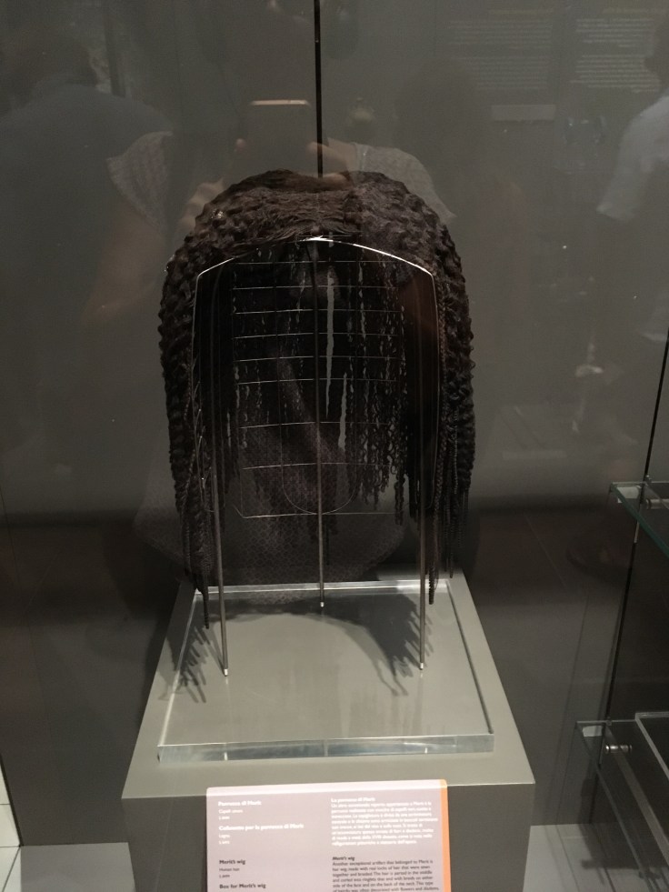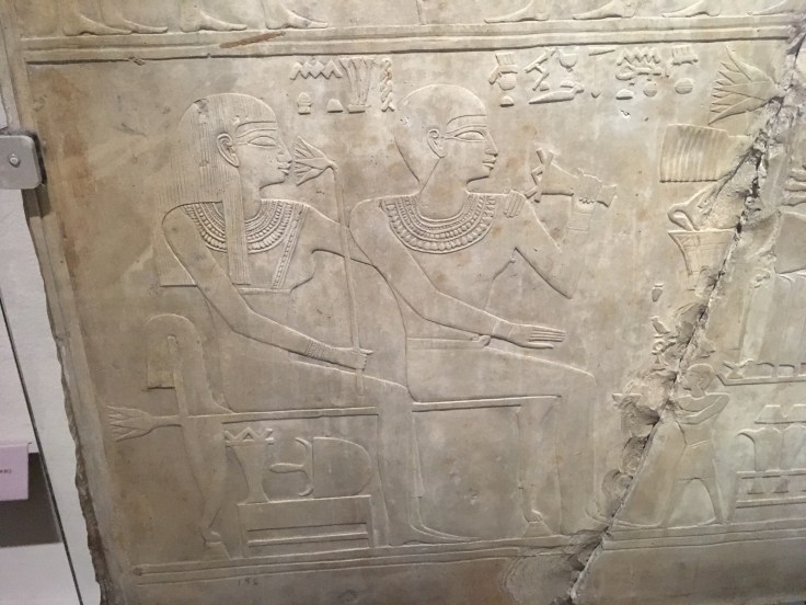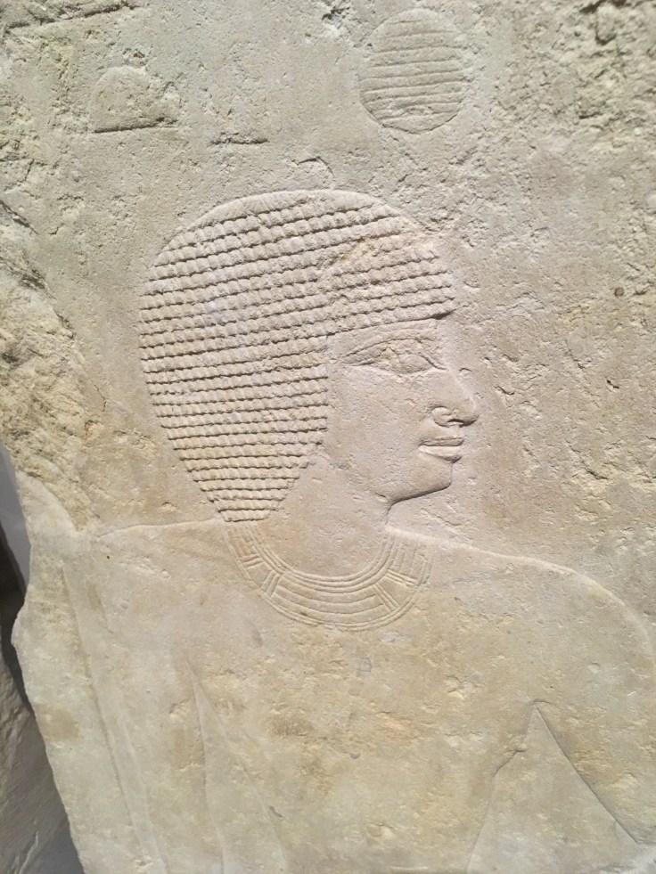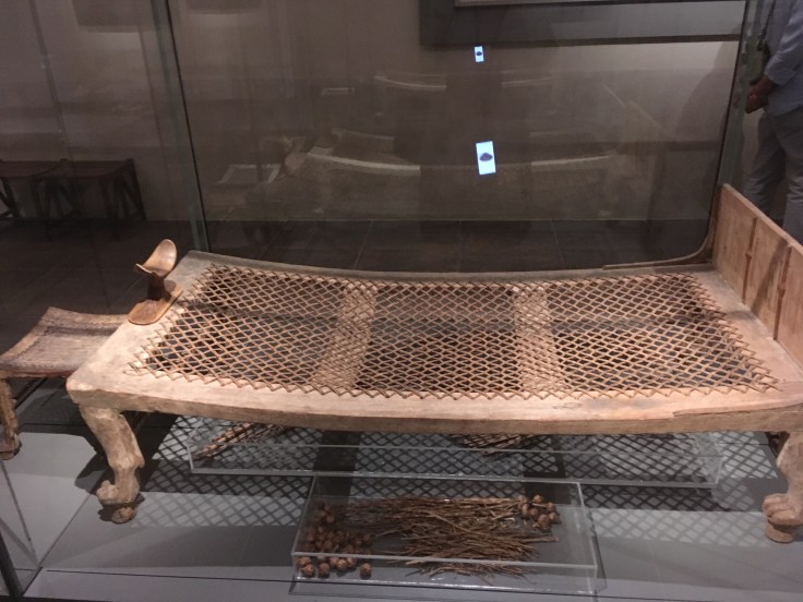 Admirez le lit et le repose tête. C’est beau car simple et presque vivant alors que cela a plus de 4000 ans. La perruque de la femme en vrais cheveux.