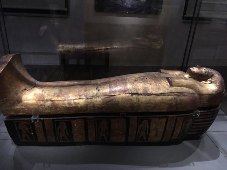 Une salle est entièrement consacrée à des sarcophages de plusieurs époques. Le travail de peinture sur le premier exposé me bouleverse.