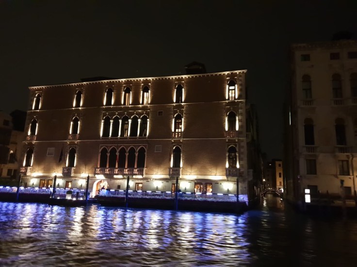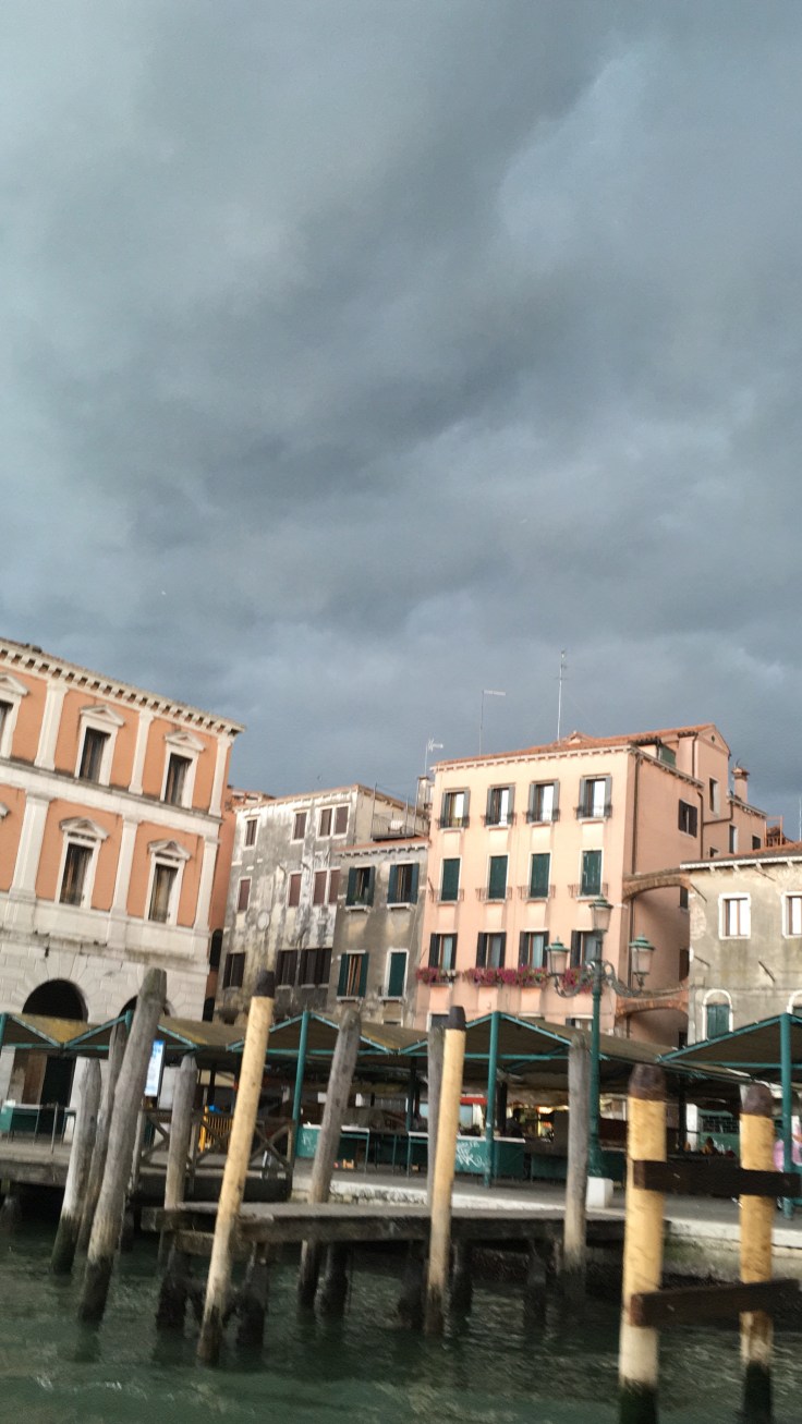 En sortant il pleut, mais le gros de l’orage est passé. Nous reprenons le vaporetto puis le bateau pour entrer sur notre île. Les éclairs déchirent la nuit, la lagune tangue un peu.
