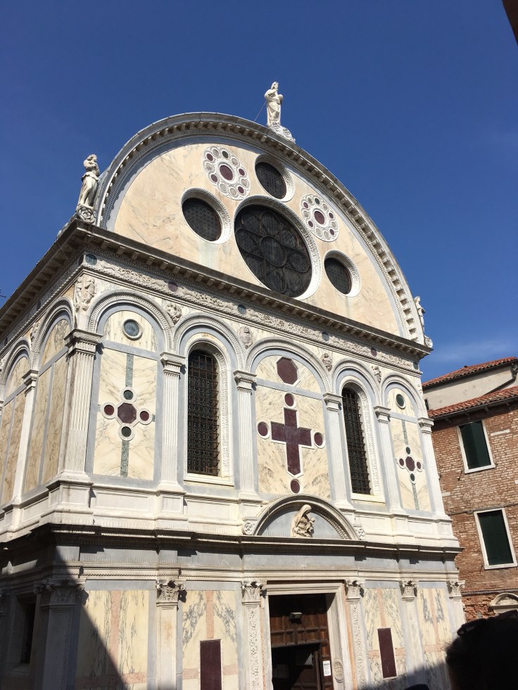 L’église Santa Maria des Miracles. Nos short ou jupes sont trop courtes, impossible de visiter.