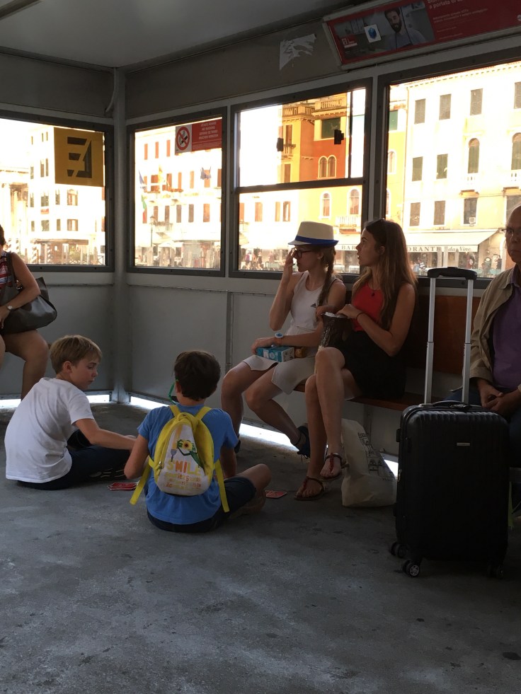 Nous attendons le vaporetto et les enfants en profitent pour faire un tour de tarot.