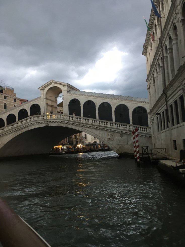 Nous passons sous le pont du Rialto et nous décidons d’aller au restaurant manger un repas chaud typique de Venise ( et j’oublierai de vous faire un photo).