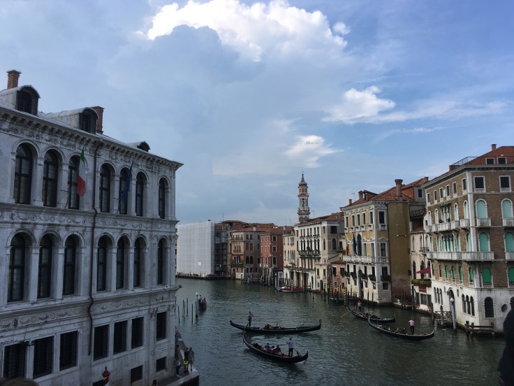 Ce grand Canal c’est quand même quelque chose. Les hôtels sont plus beaux les uns que les autres mais ce que j’aime particulièrement c’est les perspectives qui apparaissent lors des croisements avec les petits canaux qui permettent de pénétrer dans la ville. C’est ça l’esprit de Venise. Grandeur et multiples petits secrets.