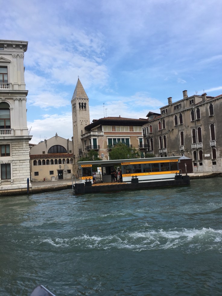 Nous prenons notre vaporetto pour nous rentre à San Marco. Cela nous permet de remonter tout le long de Venise et de voir les ports de gros bateaux de croisières.