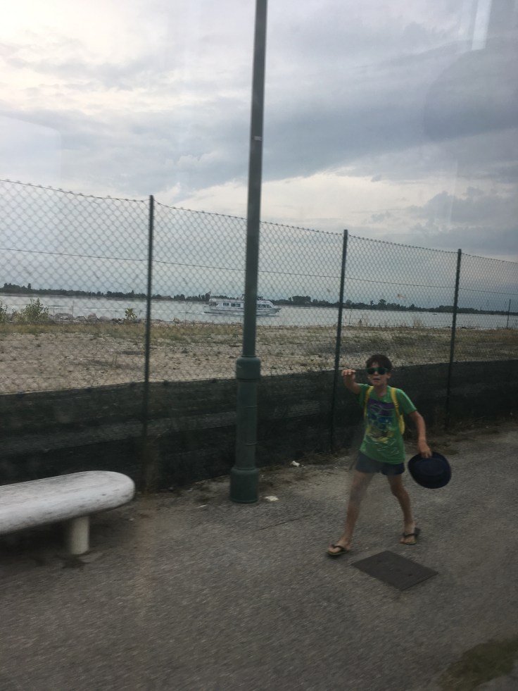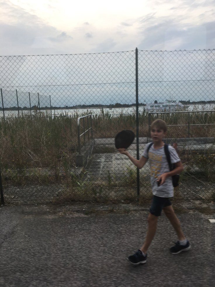 Puis c’est le bateau pour Lido. Le trafic maritime dans la lagune est vraiment impressionnant. Je me surprend plusieurs fois à dire aux enfants, on va prendre le bus. Mais c’est exactement ça ! Il y a des arrêts partout, des panneaux avec les lignes indiqués. Un plan TCL mais de bateau.Message de Pascal. Il a récupéré Paola et a réussi à prendre le bateau pour nous rejoindre. Les retrouvailles sont proches.