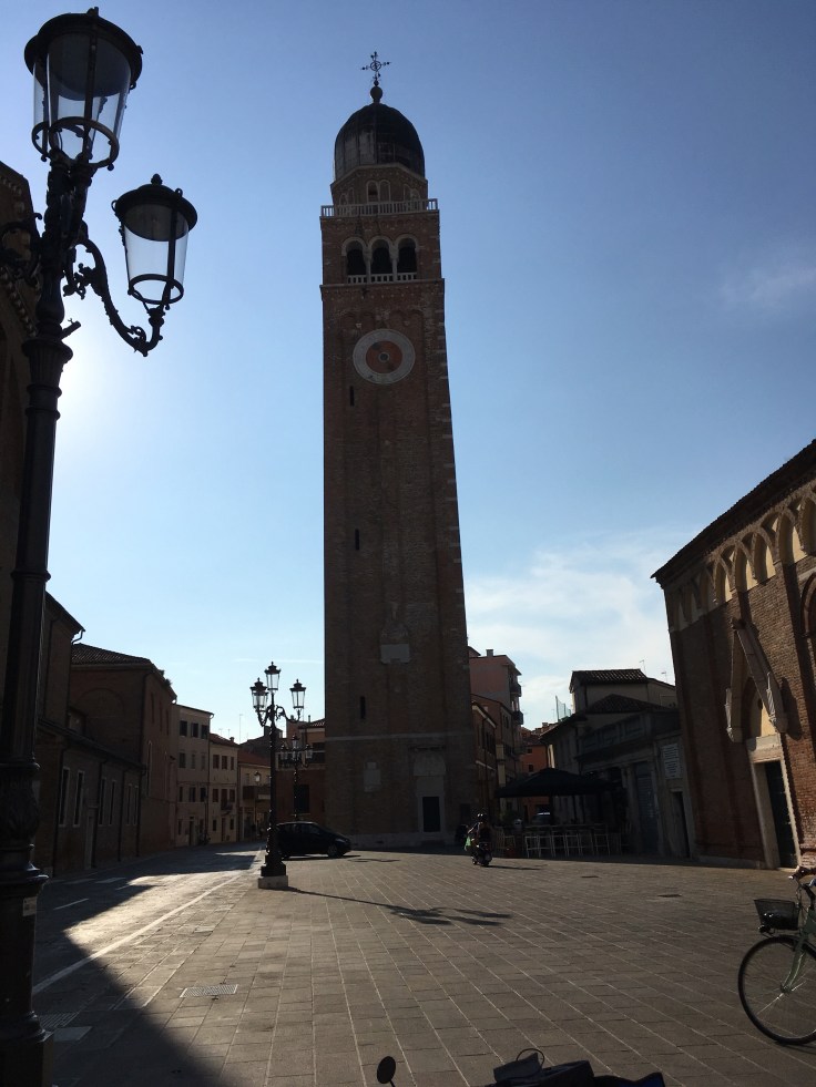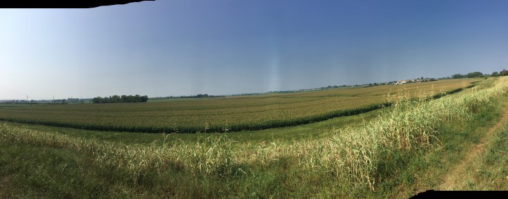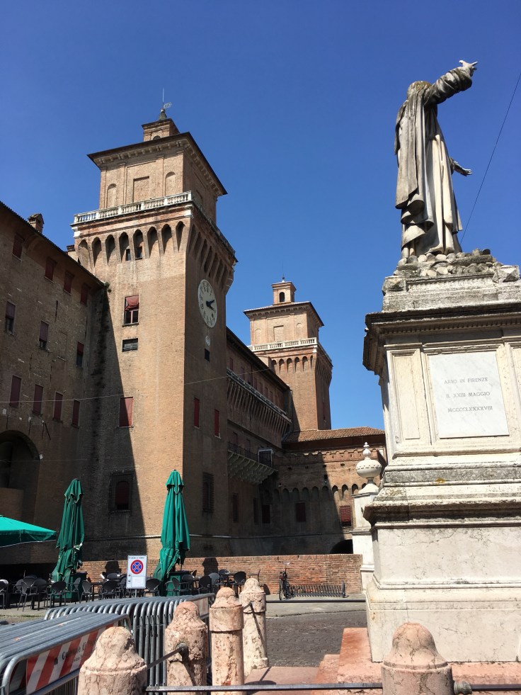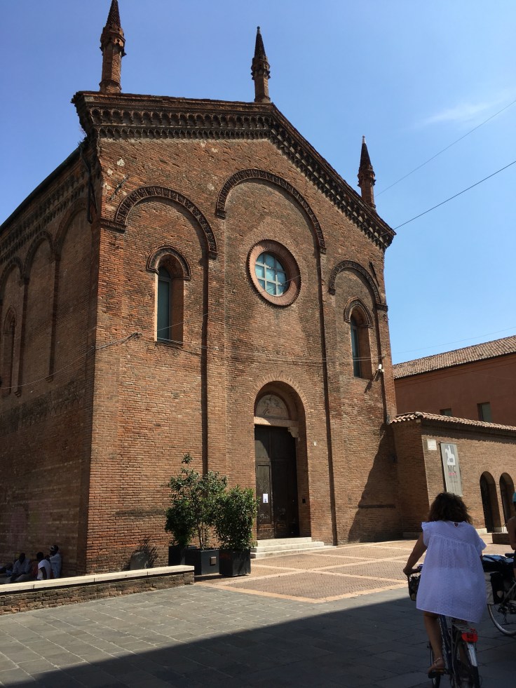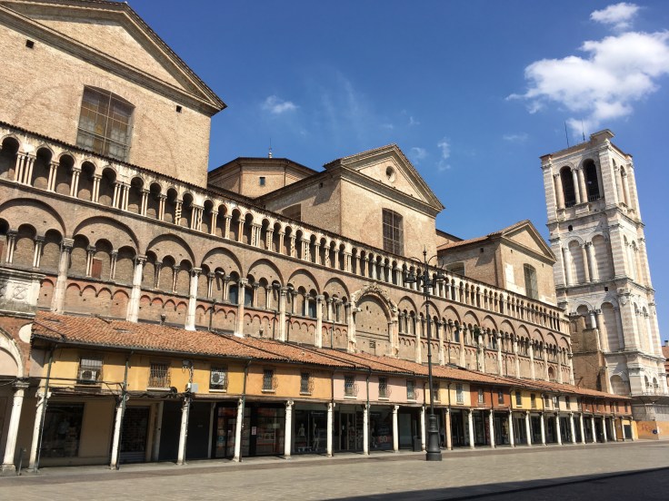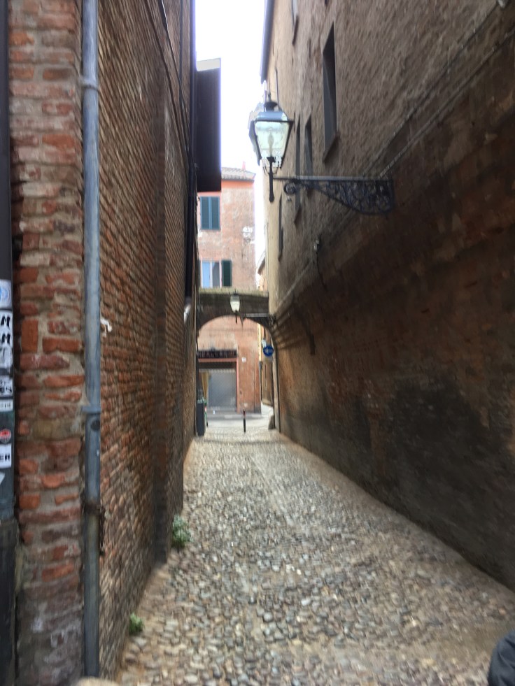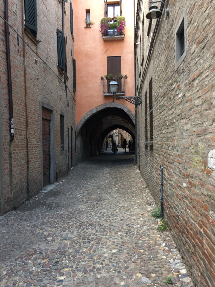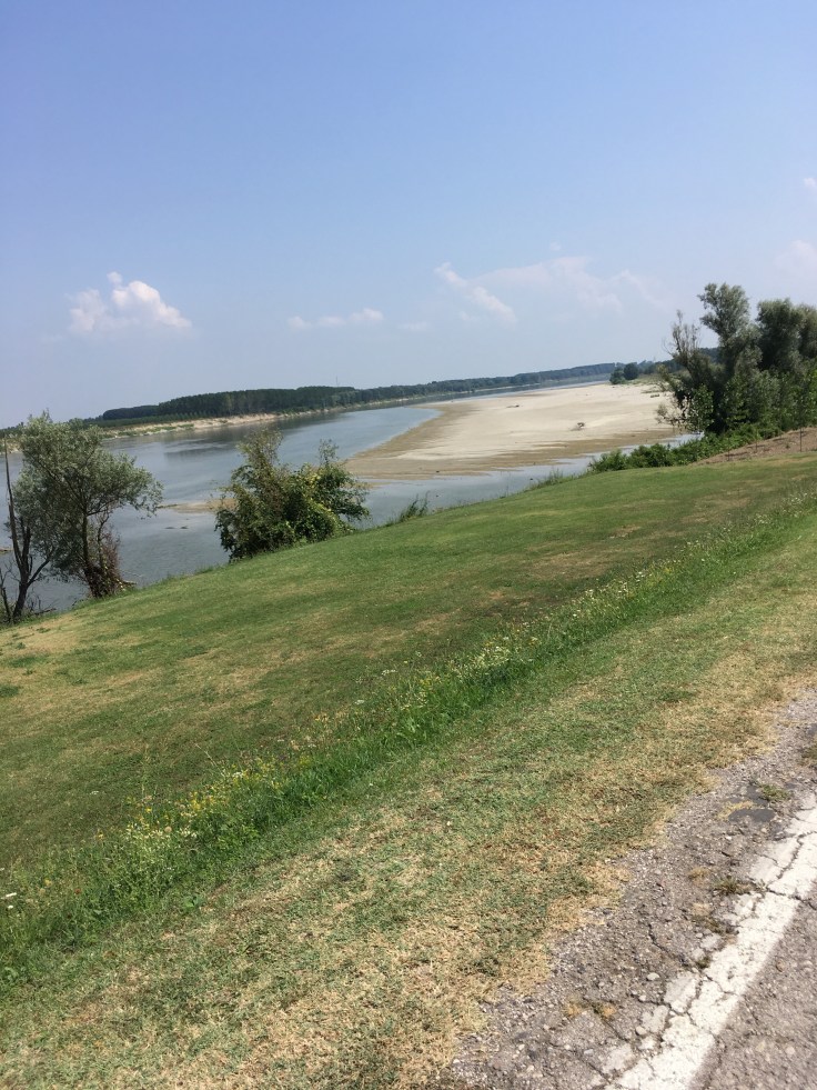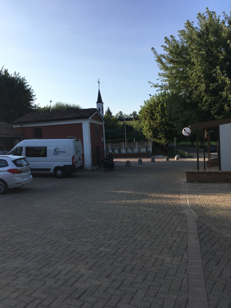 À midi nous sommes à l’entrée de Ferrara. Il faut trouver un réparateur pour le vélo de Solène. J’ai une totale confiance en mon magasin fétiche de vélo à Lyon Vélonaute. Malheureusement, les ennuis s’enchaînent et je suis obligée de revoir mon avis. Certes César a ajouté un grand pignon à Solène pour qu’elle puisse mouliner en cas de montée. C’est elle qui porte la tente, plus de 10kg, en plus de ses sacoches. Mais l’écart entre le pignon de la cassette et le supplémentaire est trop grand. Elle a du mal à passé ses vitesses et son dérailleur n’est pas d’une qualité suffisante pour ce genre d’exercice.