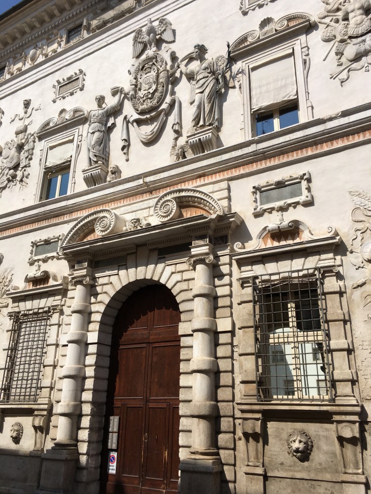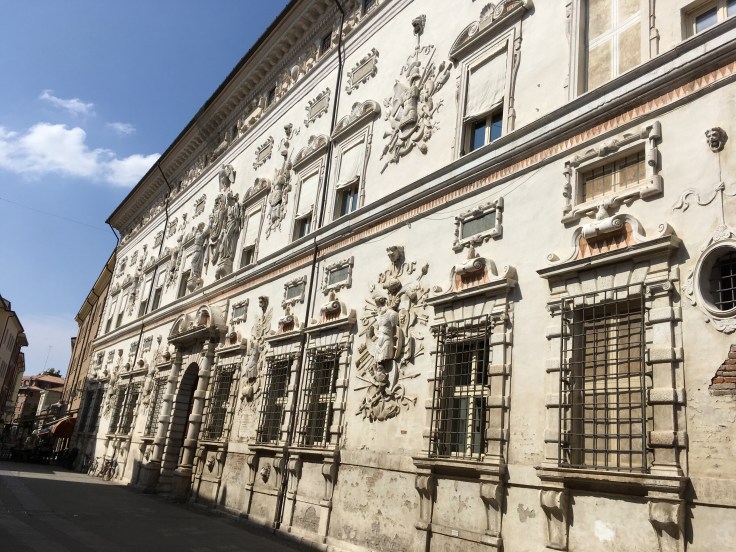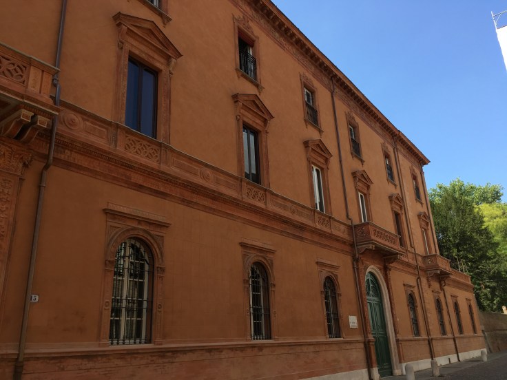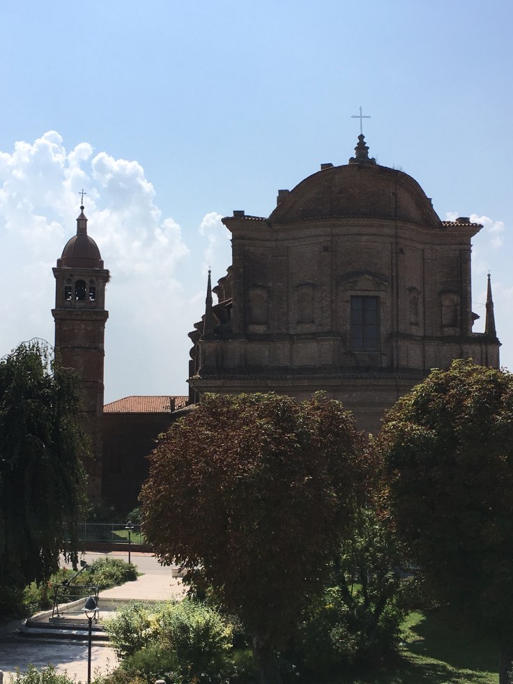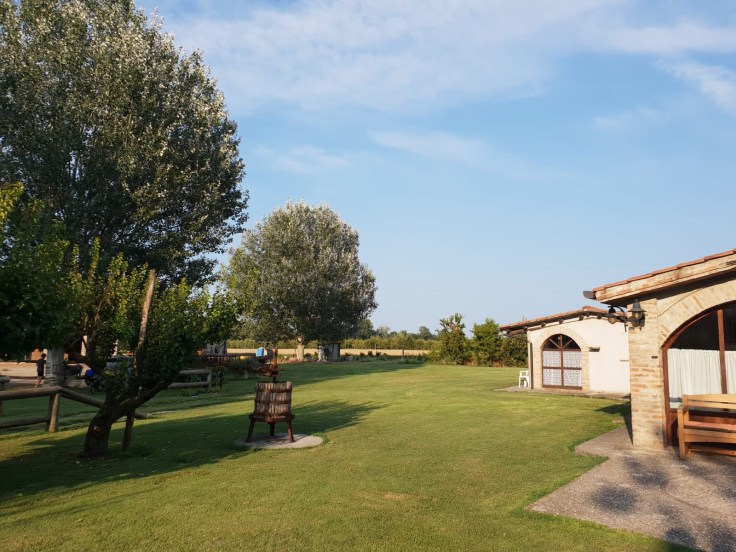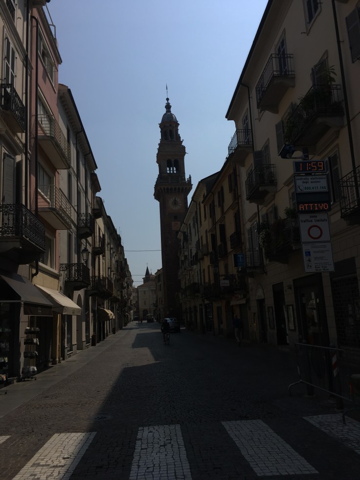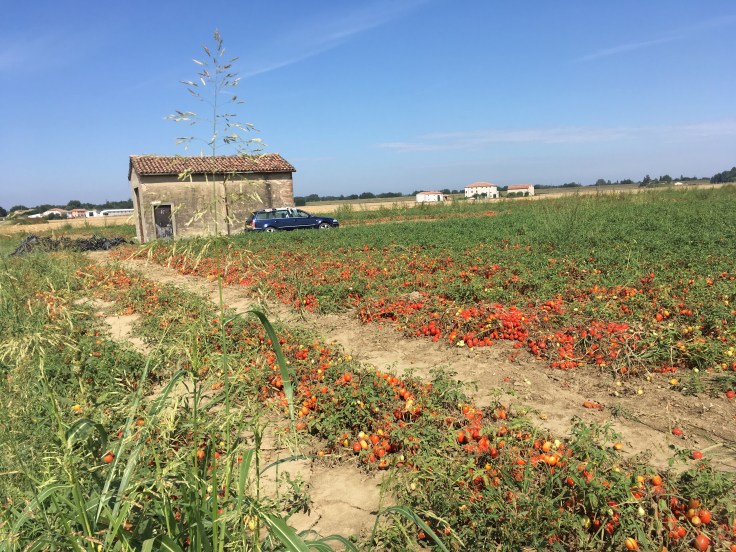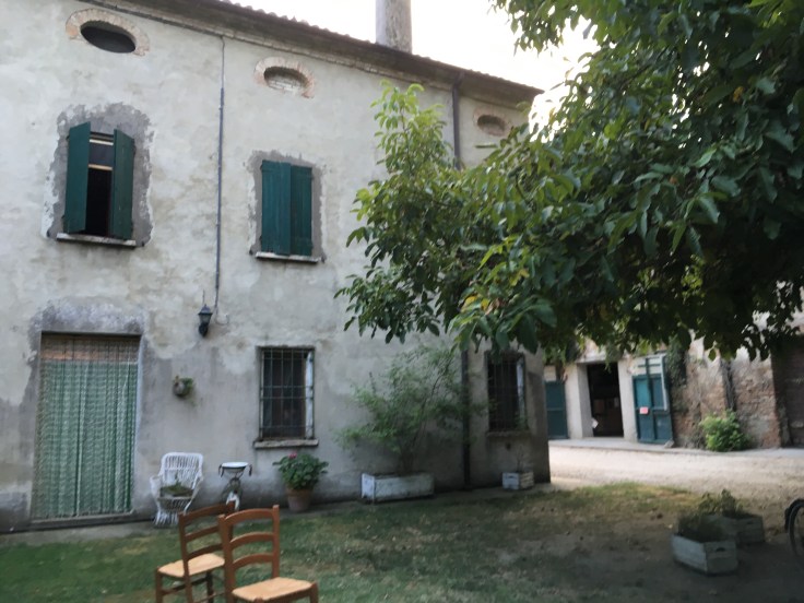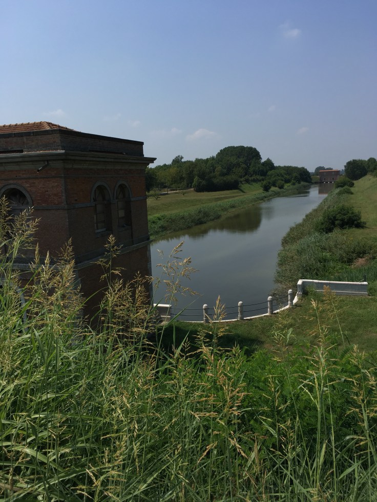 À midi nous sommes à l’entrée de Ferrara. Il faut trouver un réparateur pour le vélo de Solène. J’ai une totale confiance en mon magasin fétiche de vélo à Lyon Vélonaute. Malheureusement, les ennuis s’enchaînent et je suis obligée de revoir mon avis. Certes César a ajouté un grand pignon à Solène pour qu’elle puisse mouliner en cas de montée. C’est elle qui porte la tente, plus de 10kg, en plus de ses sacoches. Mais l’écart entre le pignon de la cassette et le supplémentaire est trop grand. Elle a du mal à passé ses vitesses et son dérailleur n’est pas d’une qualité suffisante pour ce genre d’exercice.