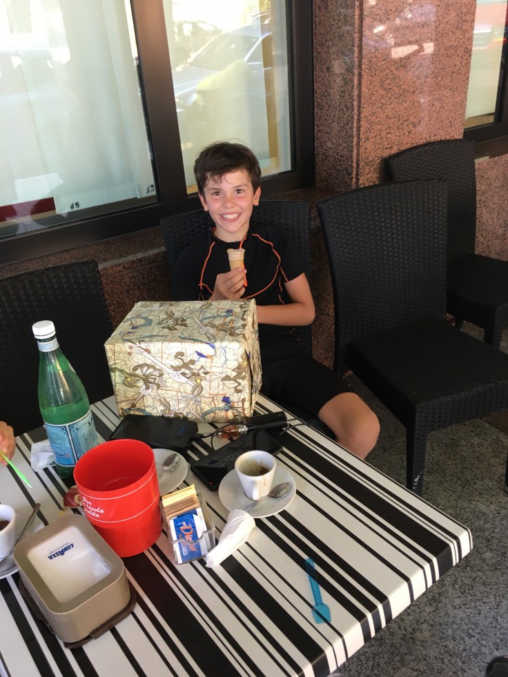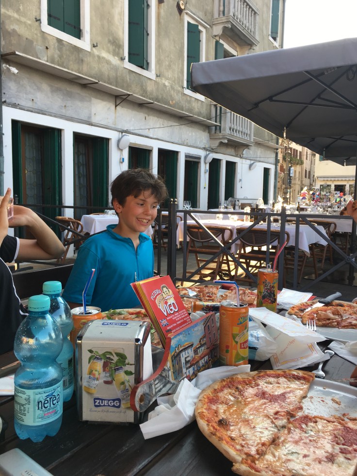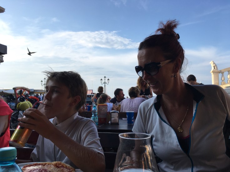 Puis c’est le bateau pour Lido. Le trafic maritime dans la lagune est vraiment impressionnant. Je me surprend plusieurs fois à dire aux enfants, on va prendre le bus. Mais c’est exactement ça ! Il y a des arrêts partout, des panneaux avec les lignes indiqués. Un plan TCL mais de bateau.Message de Pascal. Il a récupéré Paola et a réussi à prendre le bateau pour nous rejoindre. Les retrouvailles sont proches.