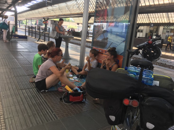 Nous avons une obligation au milieu de ce questionnement : récupérer Paola à 16h à l’aéroport. Elle arrive avec son vélo dans un carton de Lyon pour finir le voyage à vélo avec nous. Je ne sais pas qui de Paola ou des garçons est le plus impatient de cette arrivée.