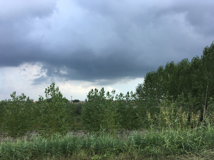 Nous arrivons à notre camping et avons juste le temps de déplacer nos tentes avant un énorme orage.