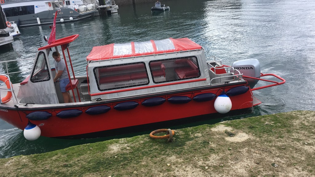 Au vu de tout ceci, j’ai réussi à faire entendre à Pascal que nous ne pourrons pas aller au bout de l’itinéraire initialement prévu. Je propose à Pascal de nous rendre jusqu’à Paimpol. Il pourra continuer à pédaler seul pendant que les enfants se reposeront avant la rentrée. En attendant il faut démarrer la journée de vélo. Nous arrivons à décoller à 12h00. Il a fallu faire des réparations sur le vélo de Solène. Nous allons prendre le taxi bateau pour passer de Saint Malo à Dinar par la mer au lieu de faire de grand tour de la anse. Pour information, le Taxi Boat est moins cher que la navette. Pas de supplément vélo ni pour le chien ! C’est tout bénéfice pour nous.