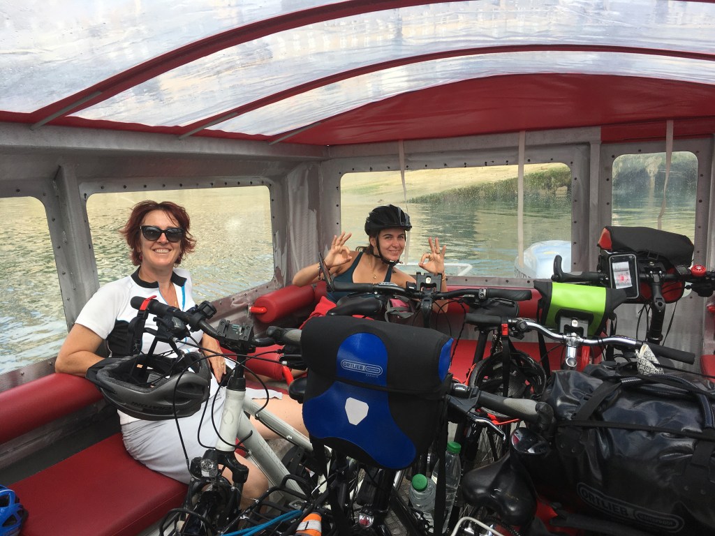 Étant montés au départ, nos vélos sont bien installés et nous aussi. Il n’y a plus qu’à tuer le temps. Nous partons à 11h57. Arrivée prévue à 17h52.