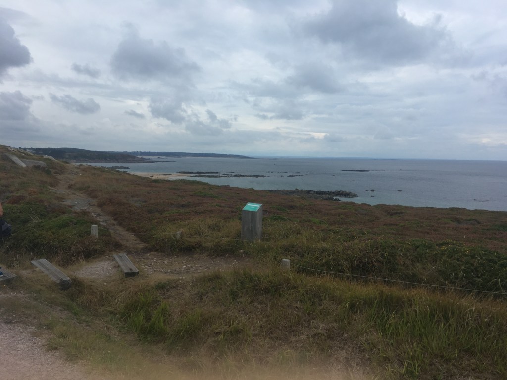 Au moment de prendre notre pause déjeuner, alors que nous avons presque fini de manger, nous prenons une averse sur la tête. 10 minutes de pluie puis plus rien. C’est donc ça la météo bretonne. Il faut juste avoir son imperméable rapidement à portée de main.