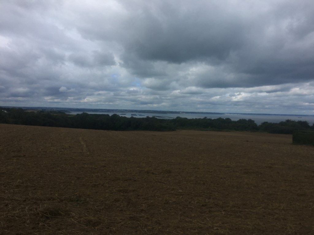 L’objectif du jour est Prodic. Il fait très beau, très chaud aussi. Le début de la piste est agréable avec de belles vues sur la mer et dans la campagne bretonne.