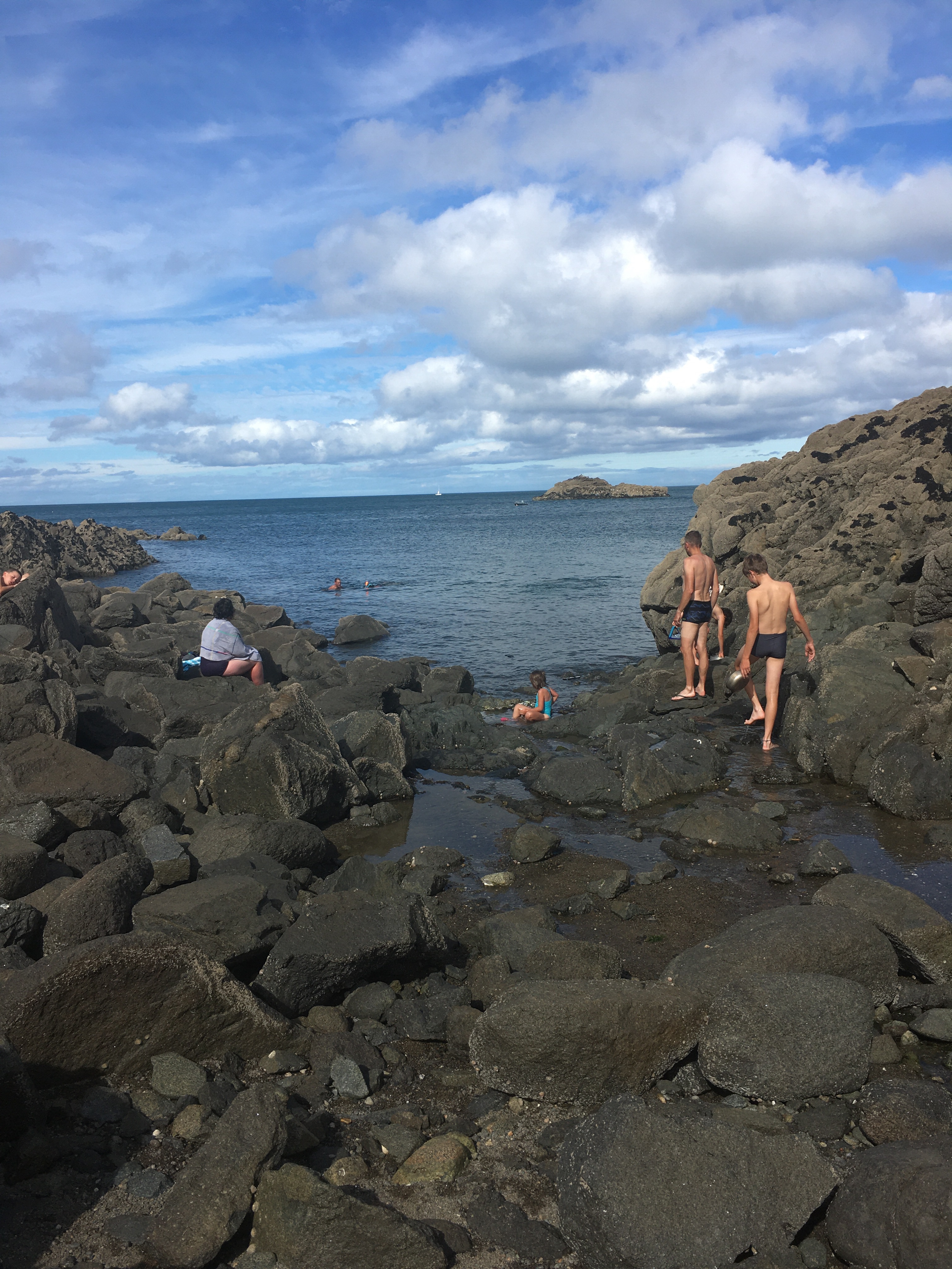 Après un repas avec vue sur mer chacun reprend son programme. Mer pour les 3 enfants et promenade sur les sentiers des douaniers pour moi. Allez vous trouver les enfants dans l’eau ?
