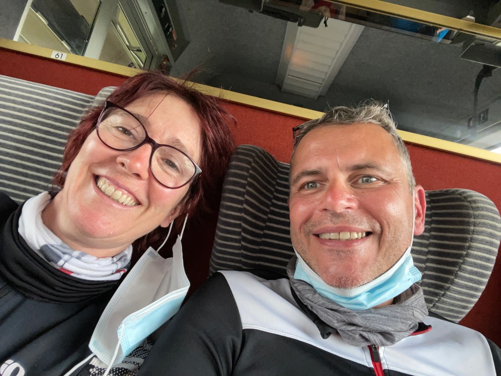 Le train arrive, nous sommes en première position, pour nous c’est gagnés…. nous sommes tous les 4 dans le train. Et cela sera même bon pour tous les autres cyclistes. Il y a des vélos de partout