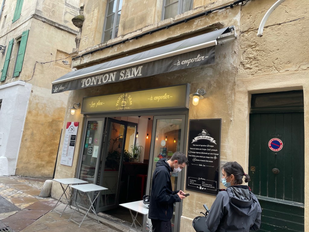 Mais le petit déjeuner est loin. Nous avons faim. Alors une fois n’est pas coutume nous vous recommandons une adresse trouvée au hasard des rues d’Arles. « Tonton Sam ». Des hamburgers maison, avec du pain bio, des viandes locales, des sauces maison et des frites délicieuses. Nous nous régalons.