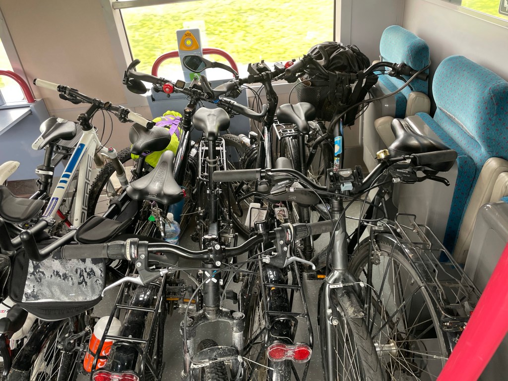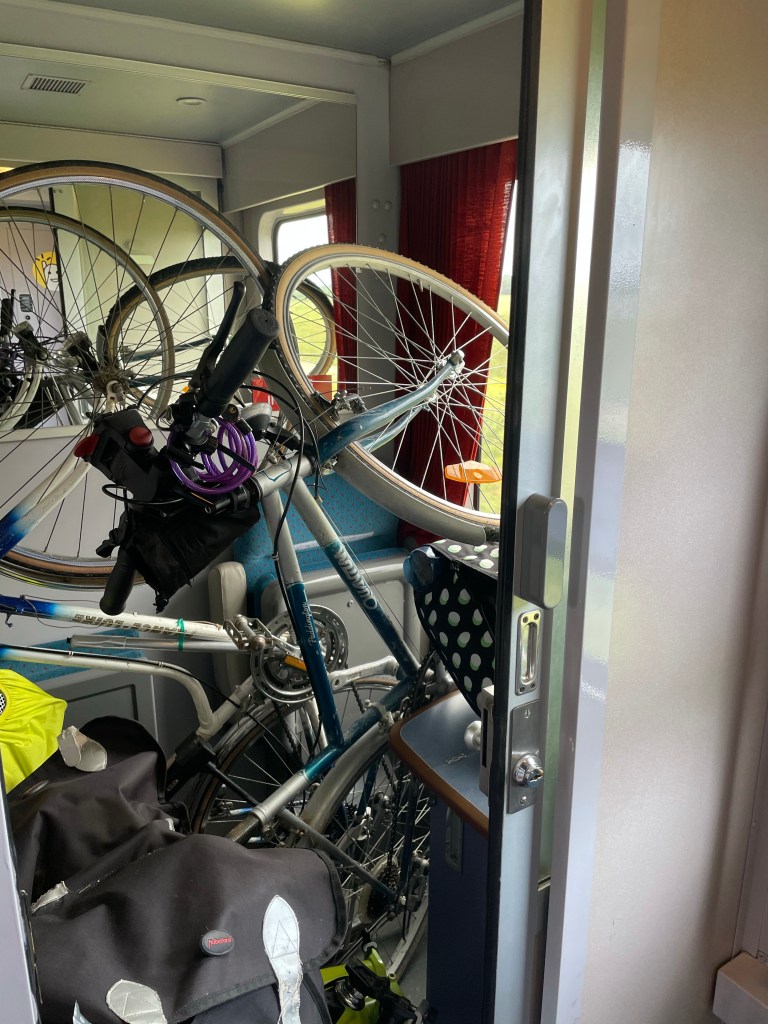 Nous sommes tous alignés sur le quais à se demander combien de vélos il y aura déjà dans le train et surtout qu’elle sera l’humeur du contrôleur. Car c’est de lui que tout dépend.