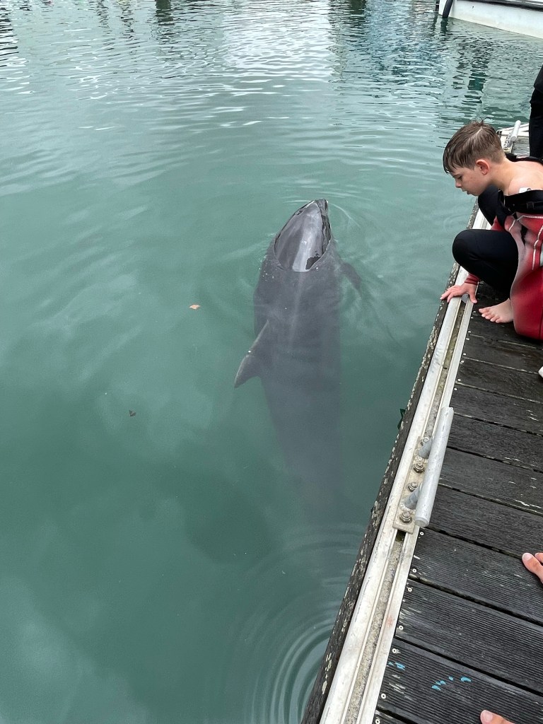 Il n’empêche que tout le monde a constaté un nez abîmé , un aileron entaillé aussi et sa taille signe de son grand âge. Savez vous comment on appelle les dauphins qui viennent dans les ports …. Des ambassadeurs. J’aime le symbole.