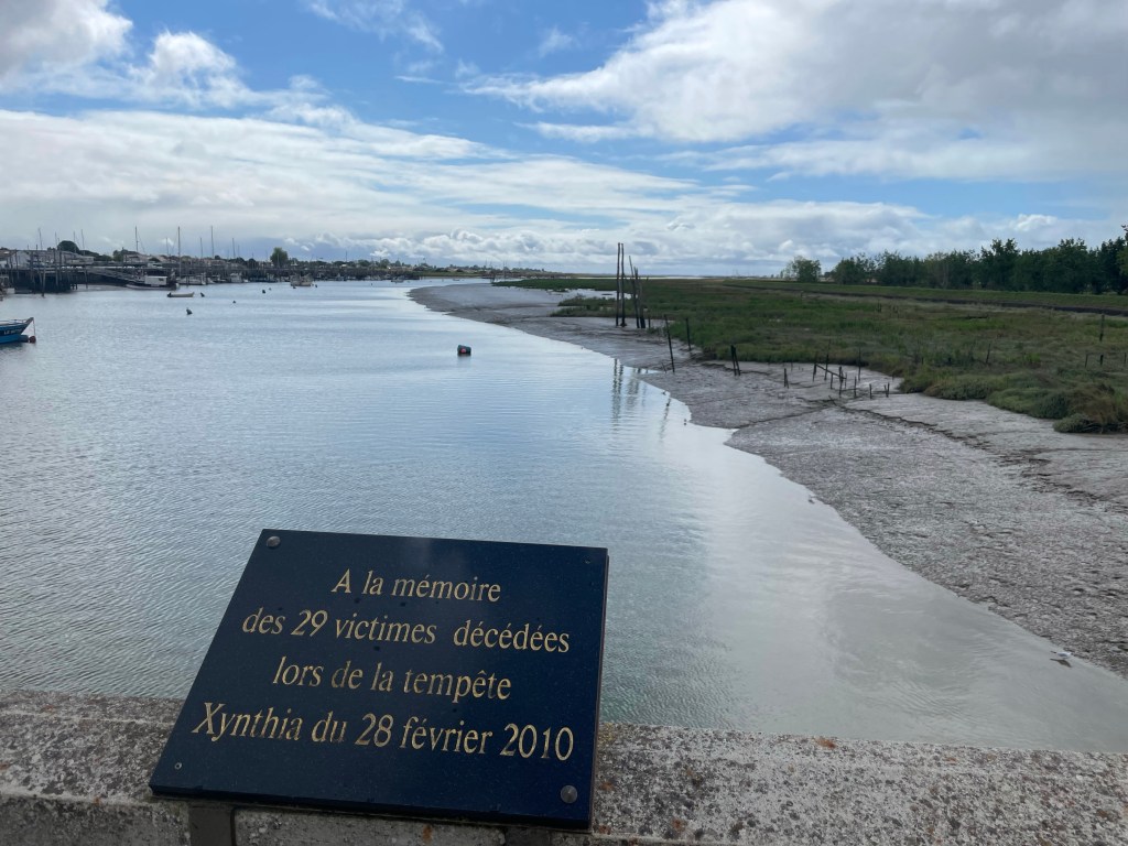 Je veux voir la pointe d’Arçay et je tente d’imposer le détour aux garçons. Impossible de les mener au bout. Ils veulent arriver à La Rochelle. Nous passons néanmoins devant le mémorial de la tempête Xianta. Beaucoup d’émotion de voir des noms de couples et de familles disparues.
