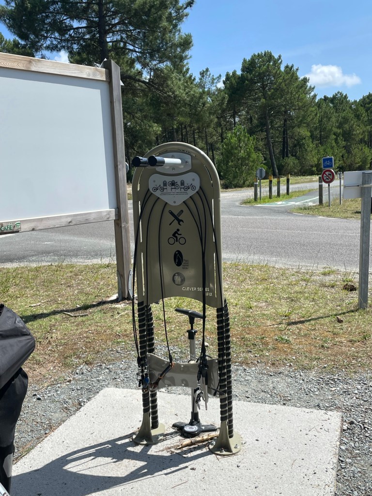 La piste nous mène jusqu’à Lacanau Océan. Nous passons devant un immense camping. Ils ont la bonne idée de faire un tarif spécial « étape Vélodysée ». 50% du tarif…. à nous le camping 5 étoiles 🤩