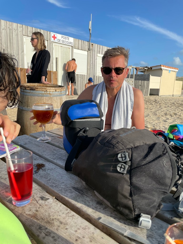 Pascal m’envoie des photos de la plage. C’est marée basse. L’océan est un peu loin. Il y a du monde et le grand gaillard est moins agité aujourd’hui.