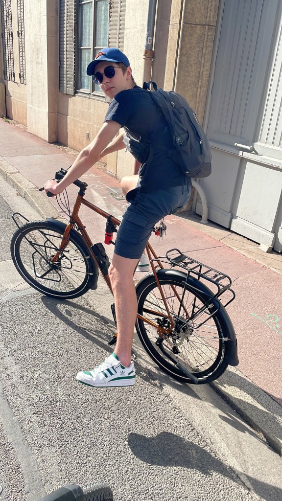 On est obligé faire des pauses sous des arbres avec à peine d’ombre pour nous quatre. Pierre-Louis et Pascal nous distancent avec Raphaël. Il a beaucoup de force et une super vélocité mais à 15 ans, il râle quand ça monte. Ça me rappelle Pierre-Louis en Bretagne. Comme quoi, tout passe.