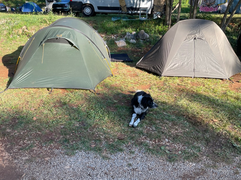Finalement nous sommes arrivés à 23h30 au camping. Il a falllu monter les tentes et tout sortir. En 1h30 c’est fait. Une efficacité de dingue.
