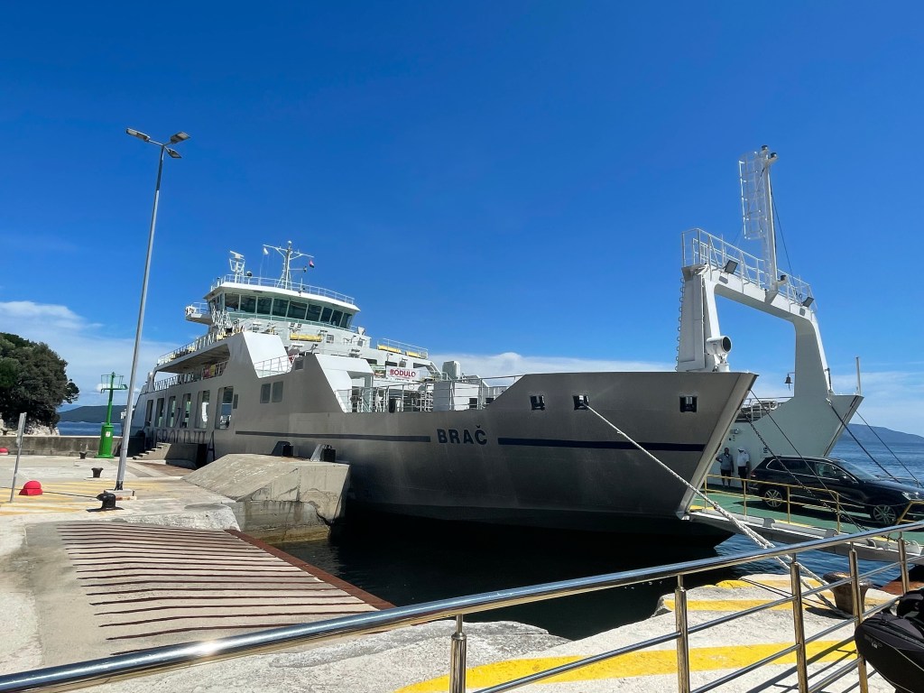 La vue est magnifique. Nous longeons l’Adriatique. En fait nous sommes à Opatija. Nous nous rendons au Ferry pour passer sur une île.