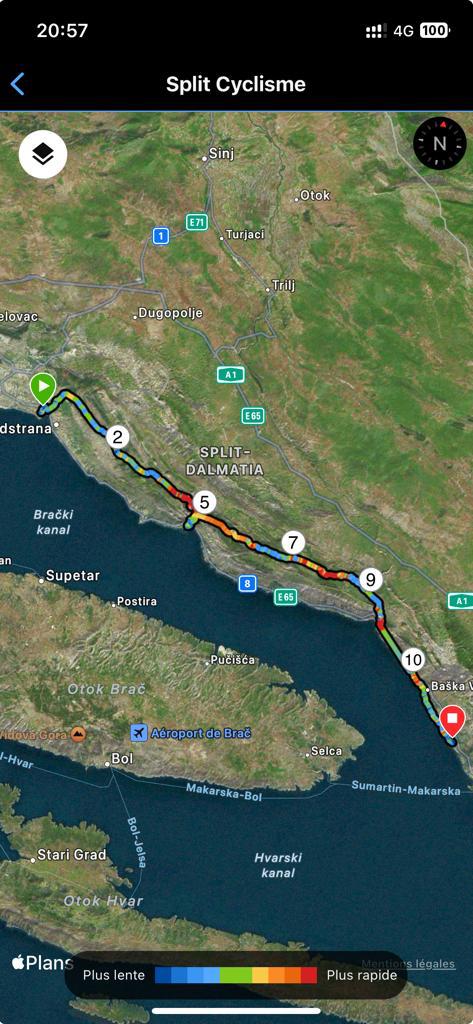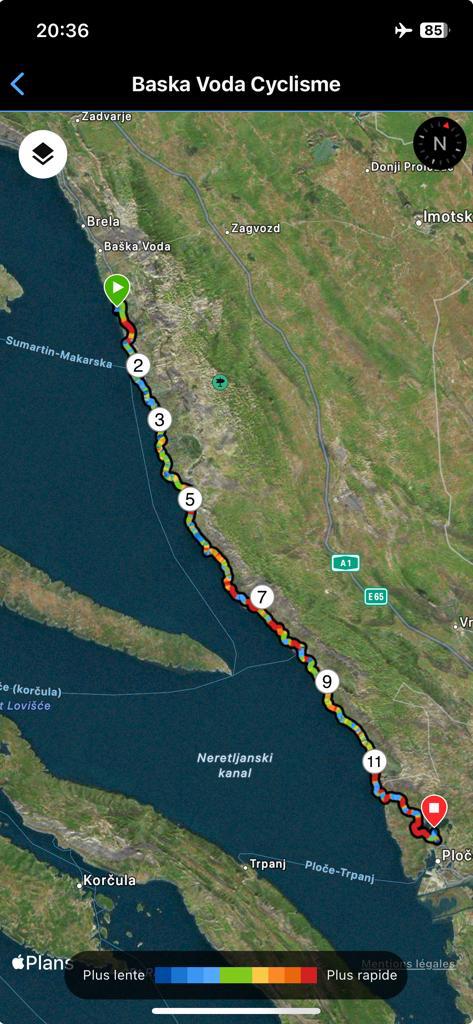 Réveil tôt car le programme s’annonce costaud. Nous décollons à 9h45. Direction Makarska. Pascal nous a annoncé un peu plus de 50 km mais beaucoup de dénivelé. Objectif rejoindre un belle baie et s’y poser demain en mode farniente.