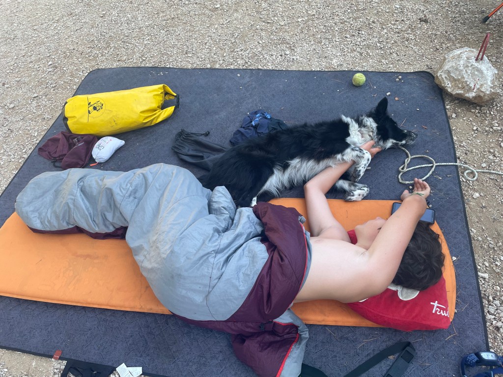 Cette nuit, Raphaël a testé notre mode de couchage. Il en a profité pour avoir Osiris à ses côtés.