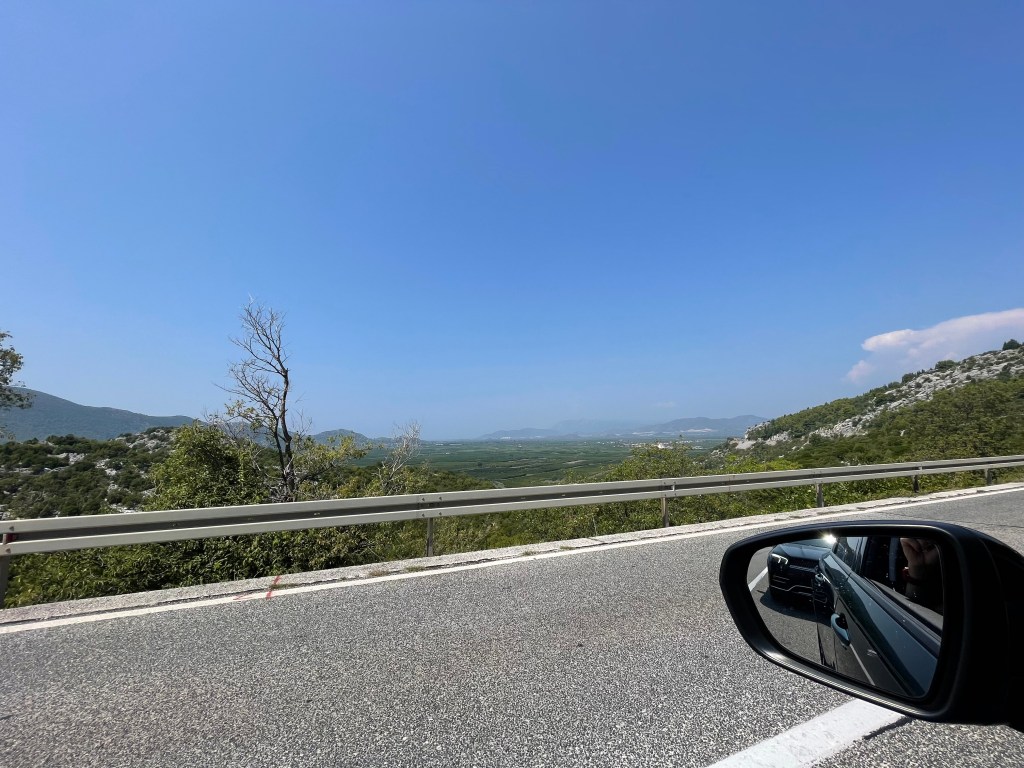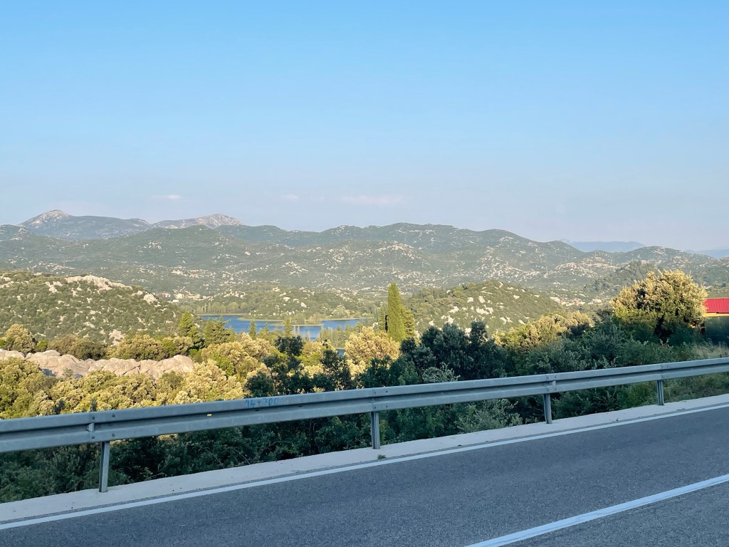 Après le repas c’est d’abord beaucoup de descente. Puis notre hantise, le partage de route. Pendant 10 km nous sommes sur la nationale qui rejoint Dubrovnik. C’est horrible. Et pour finir… une surprise pour moi