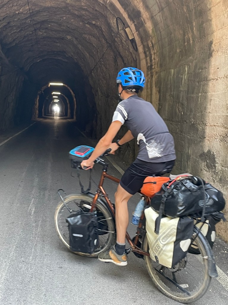 Un tunnel cela veut dire passer SOUS la montagne ! Pas par au dessus ! Je vous jure que j’ai adoré celui-là moi qui généralement ne suis pas fan du concept d’être sous terre. C’était le meilleur moment physique de la journée. Du frais et de la descente.