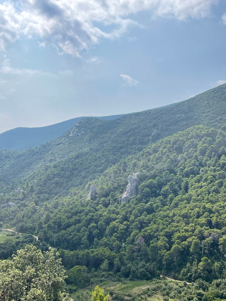 On peut alors se mettre à descendre. 6,6 km. C’est toujours plus rapide de descendre que de monter 😉. Les garçons filent, moi je flâne, mange des figues (je pense en avoir mangé au moins 1kg par jour. Large), admire la vue et profite de la climatisation après le sauna 🤣