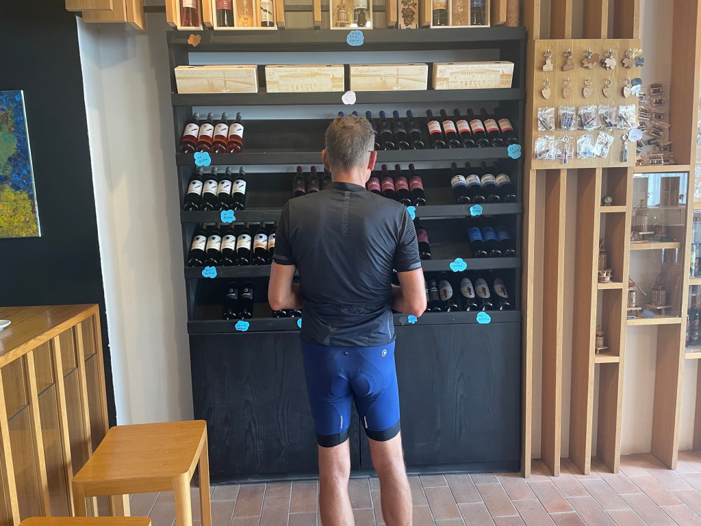 Arrive en haut, on a une pensée pour Sylvain. Ici aussi il y a du vin. Pascal aurait bien fait quelques achats
