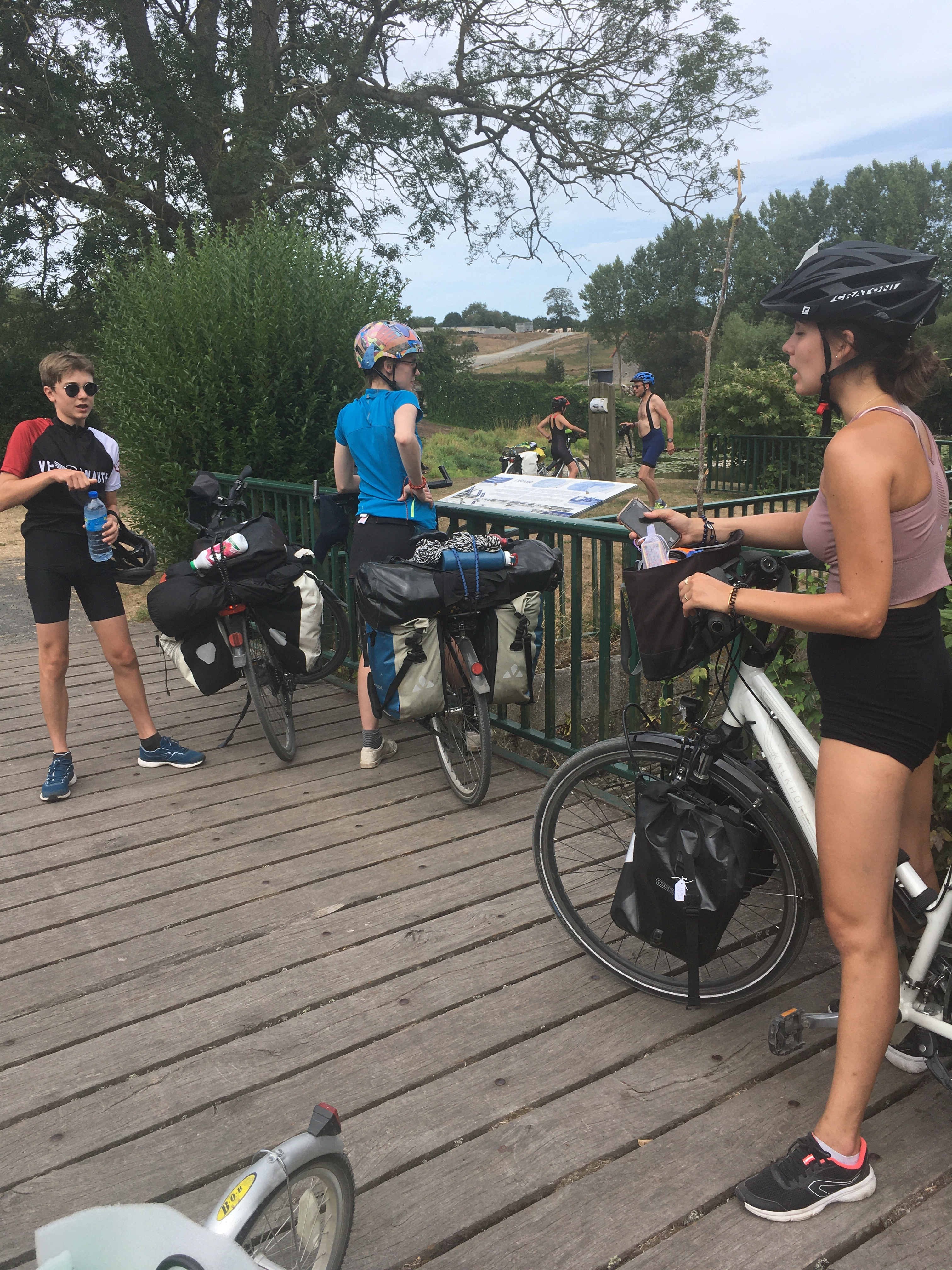 Les garçons n’oublient pas l’actualité du moment. Ils suivent la compétition de fleuret depuis le vélo de Pascal.