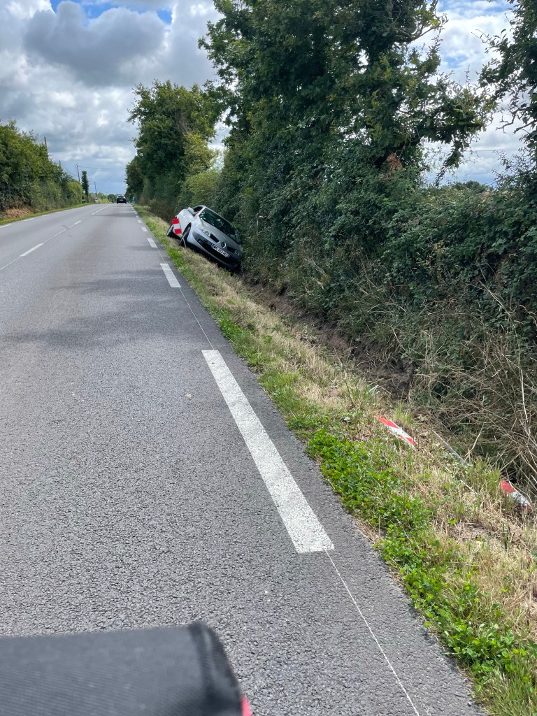 Nous voilà en partage de route sur une départementale. Il faut faire attention.