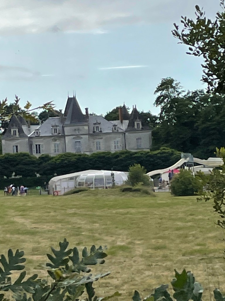 Arrivée à notre destination, nous trouvons un autre super camping « Château La Forêt ». Ce camping a été créé il y a plus de 40 ans par l’oncle de l’actuel propriétaire et le château appartient à la même famille depuis 5 générations. C’est encore un camping familial mais très grand, très spacieux. Et bien sûr…c’est sûr les terres de ce château que le parc d’accrobranche est installé.