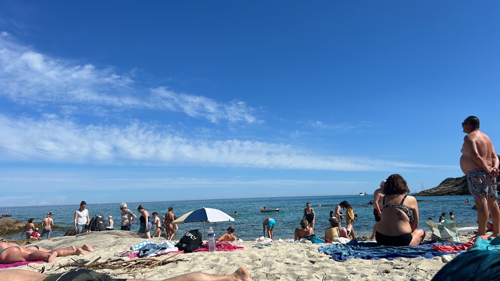 À midi, nous nous offrons une petite baignade pour faire tomber la température de nos corps. La mer est délicieuse. Bien fraîche.