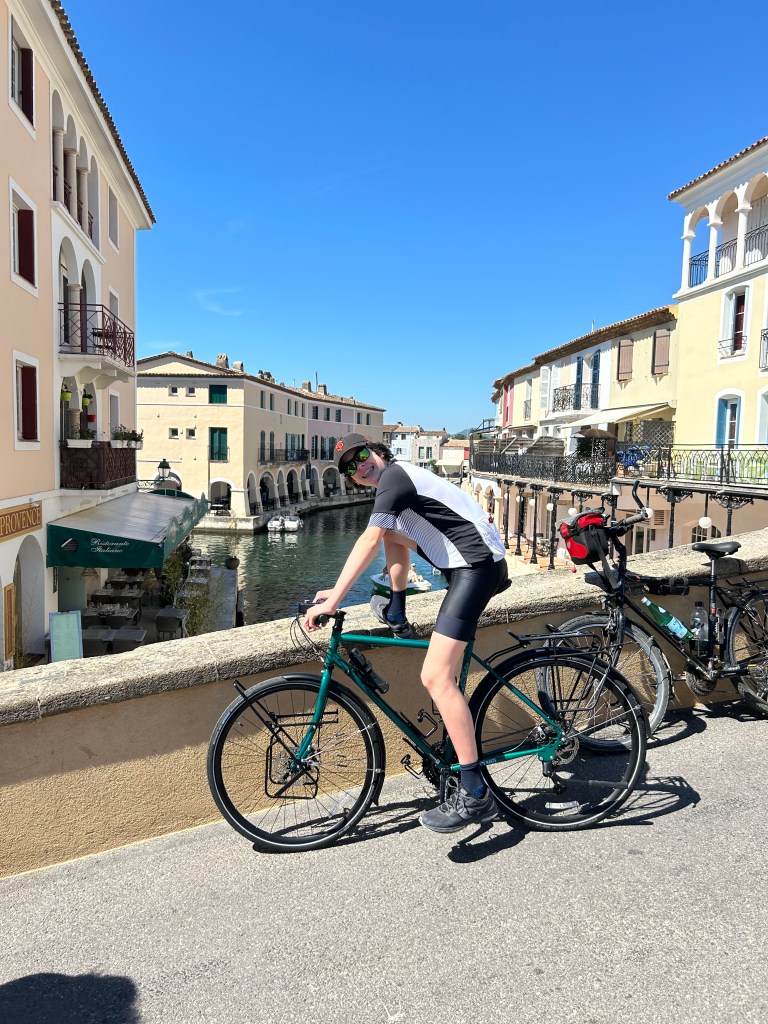 Nous longeons une petite rivière. Cela me rappelle notre premier voyage à vélo le long du canal du midi. Pédaler le long de l’eau est un régal. Apaisant et vivifiant t à la fois.