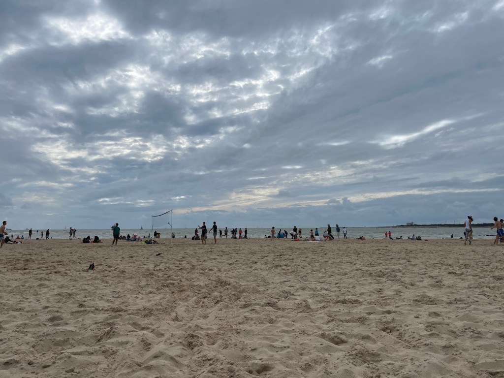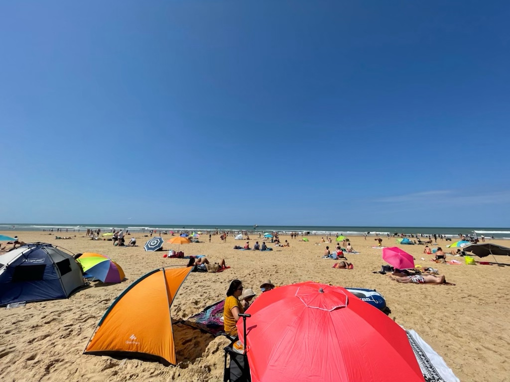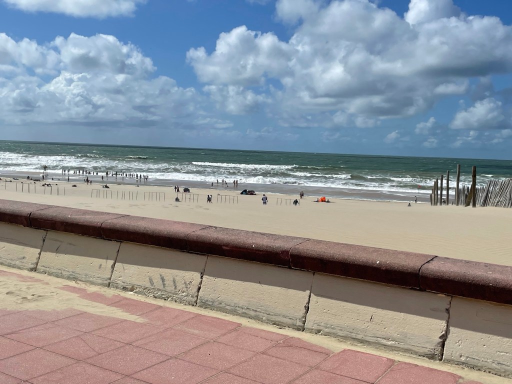 Pascal m’envoie des photos de la plage. C’est marée basse. L’océan est un peu loin. Il y a du monde et le grand gaillard est moins agité aujourd’hui.