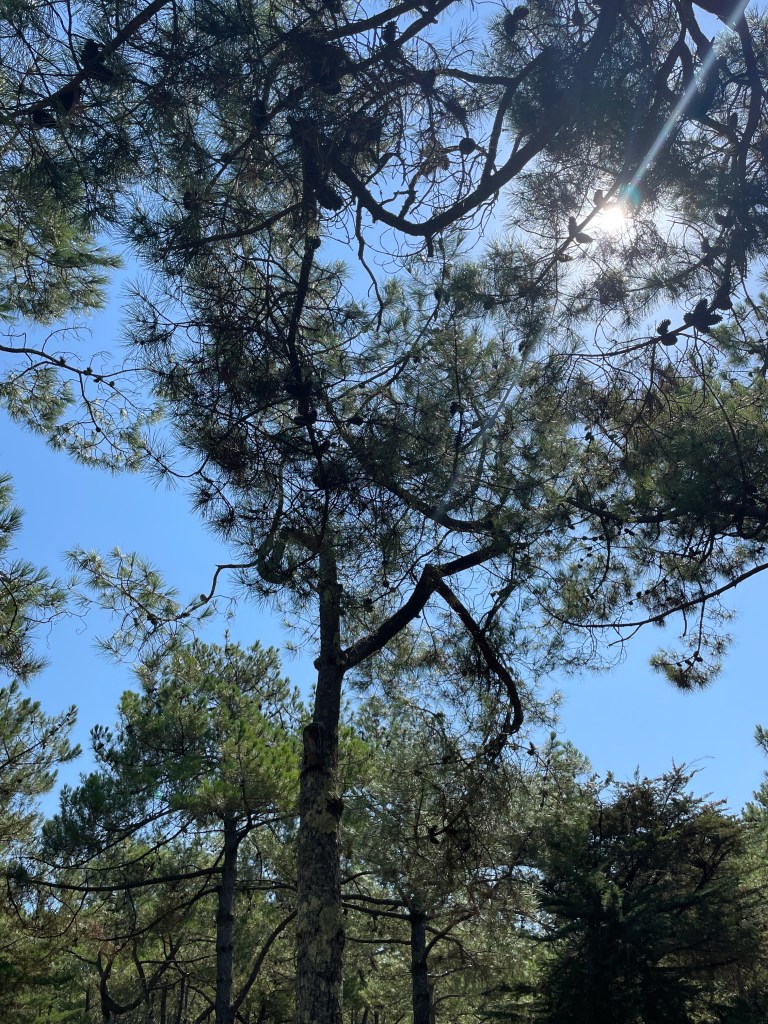 Allez ! une pause déjeuner sous les arbres. Pascal et Raphaël vont se baigner dans l’océan, je m’offre un moment de tranquille sous les pins.