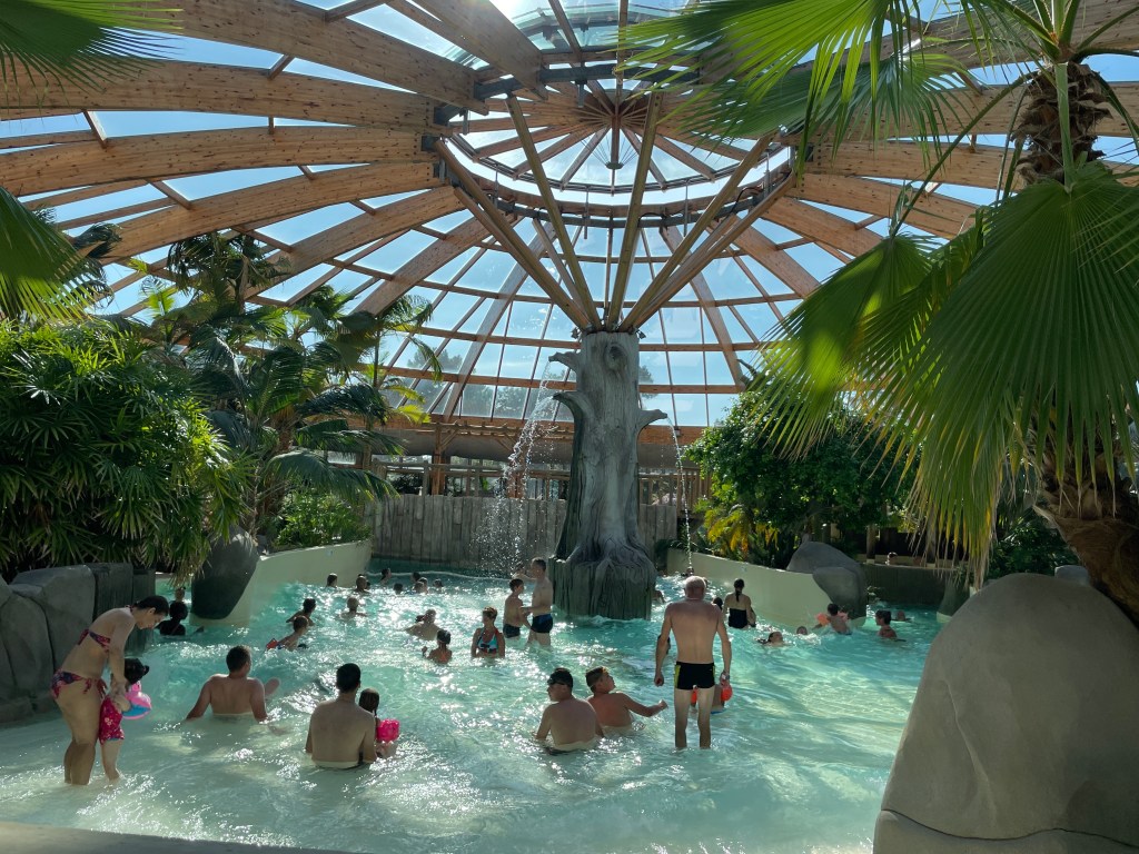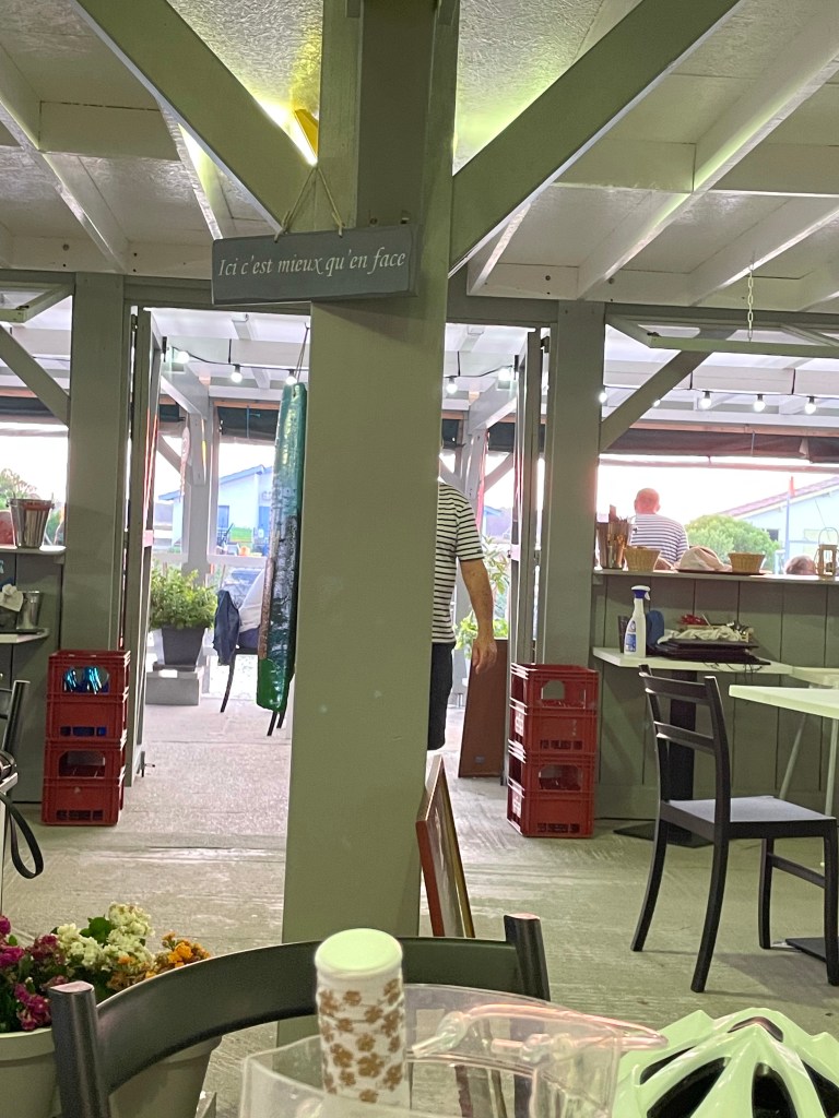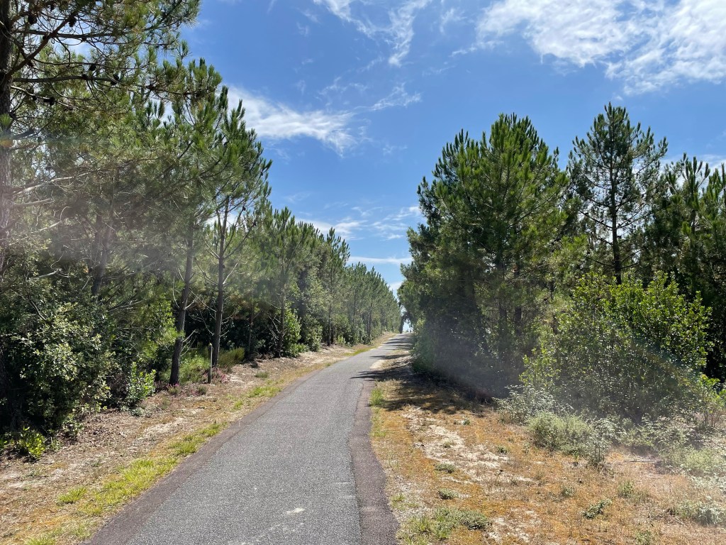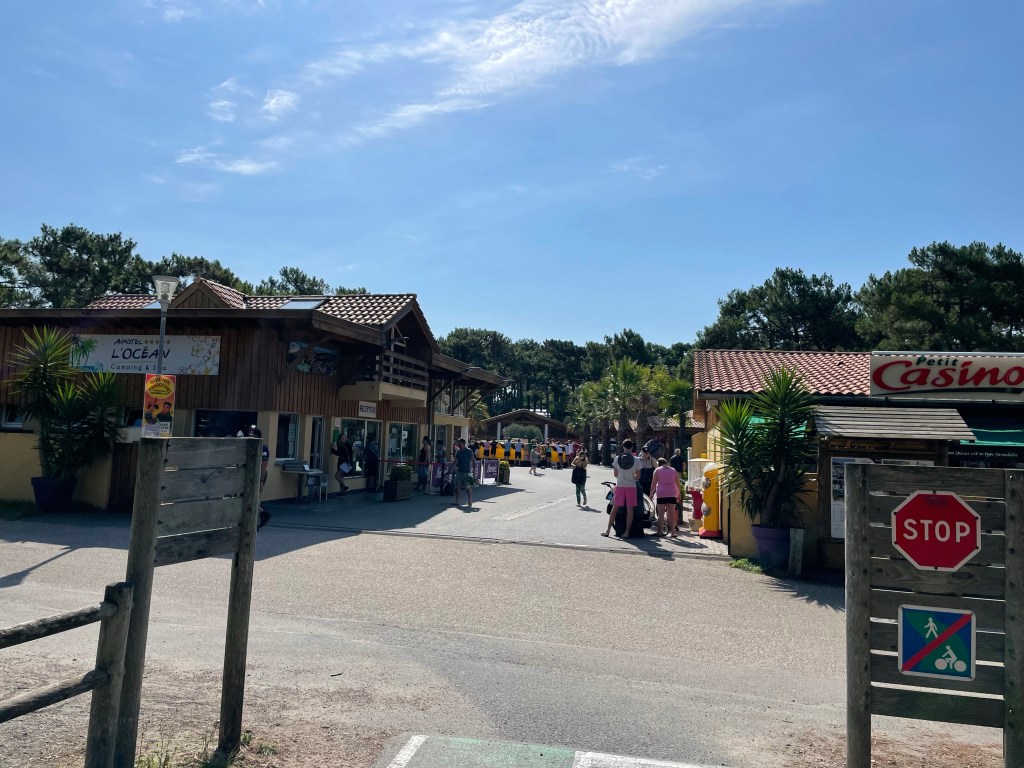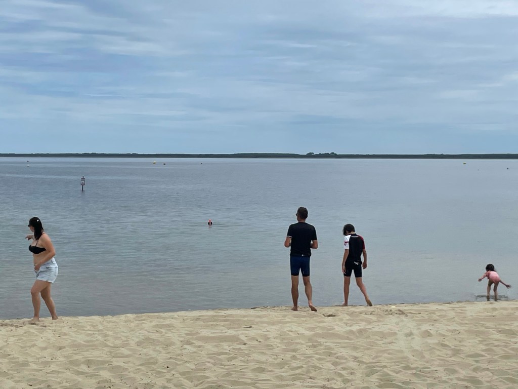 Départ tranquille. Nous sommes lents au pliage. Impossible de savoir pourquoi. Mais c’est ainsi. Nous sortons le camping à 11h. Raphaël serait bien resté, il y a des olympiades. Il doit être en manque de socialisation. Mais la bonne nouvelle est qu’il existe le même camping à notre prochain stop de deux jours à Biscarrosse.