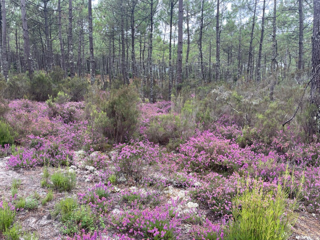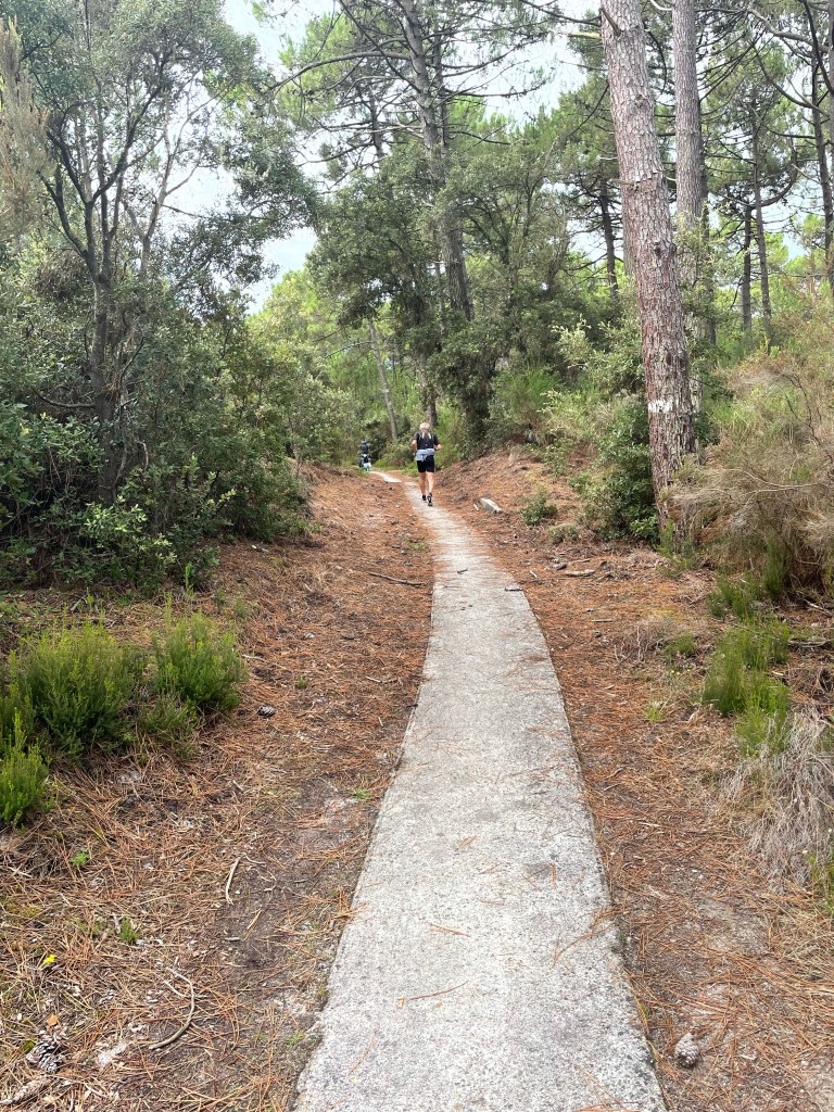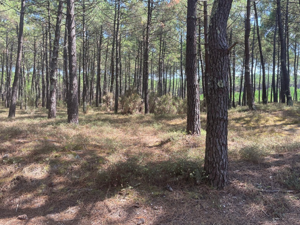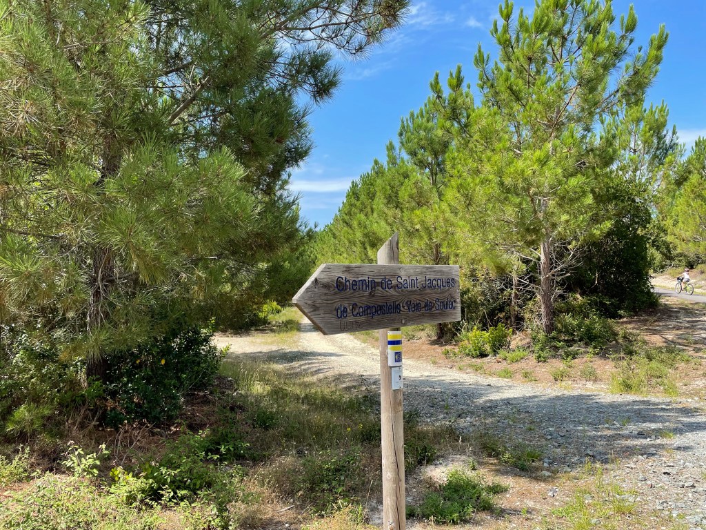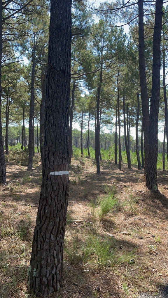 La piste continue à serpenter entre les pins. Les dunes sont à notre droite et la forêt a notre gauche. Il va en être ainsi jusqu’à l’arrivée à Hendaye. C’est le calme et la tranquillité.