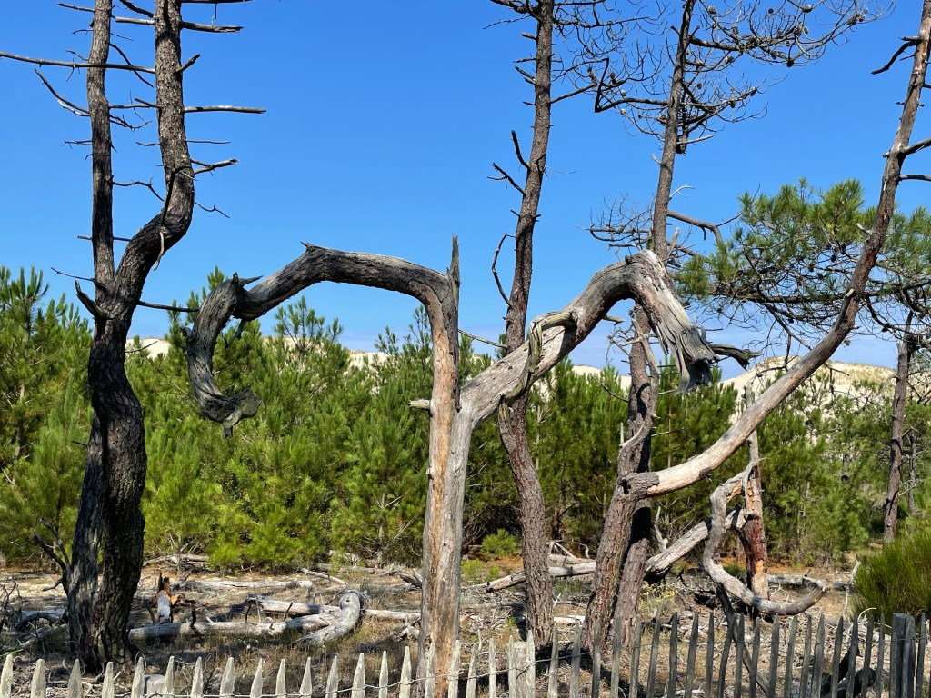 La forêt est marquée par des épisodes de feu. Parois, elle offre aussi des merveilles de contorsions. Les arbres me font alors l’effet de géants stoppés net dans leurs mouvements. On se croit dans un film sauf qu’il s’agit juste des beautés de la nature.