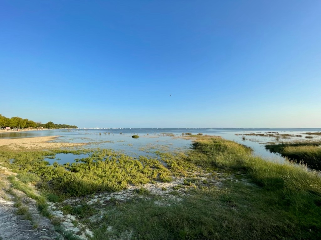 Il faut ensuite rentrer en vélo. Le bassin est maintenant dans la Jte vous offre néanmoins une photo prise avant d’arriver à la cabane à huîtres.