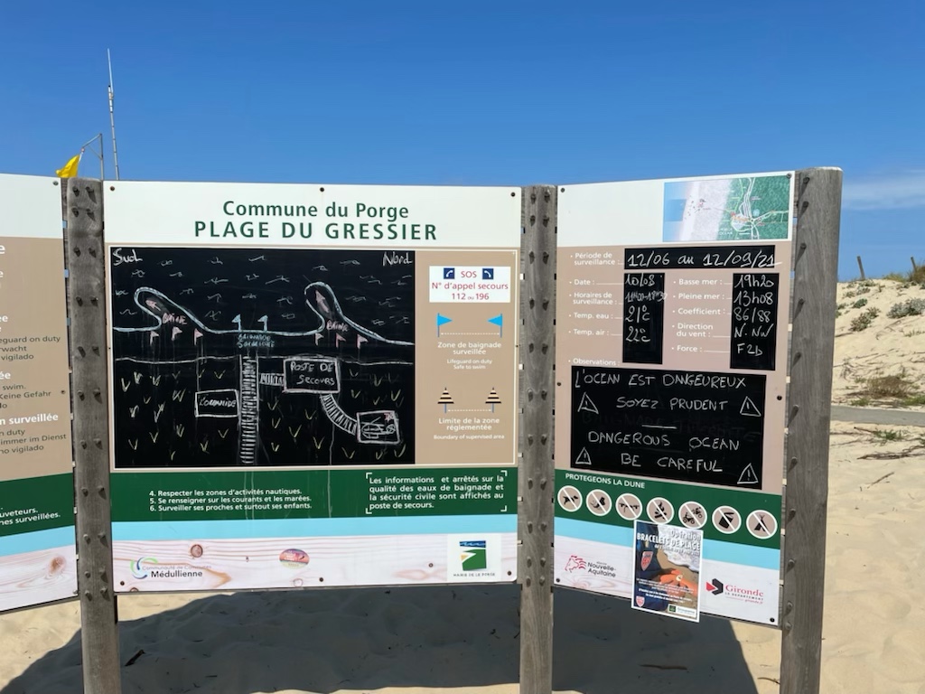 À midi nous nous arrêtons à Porge -Océan. Je suis la première… si si, des fois ça arrive 😋.